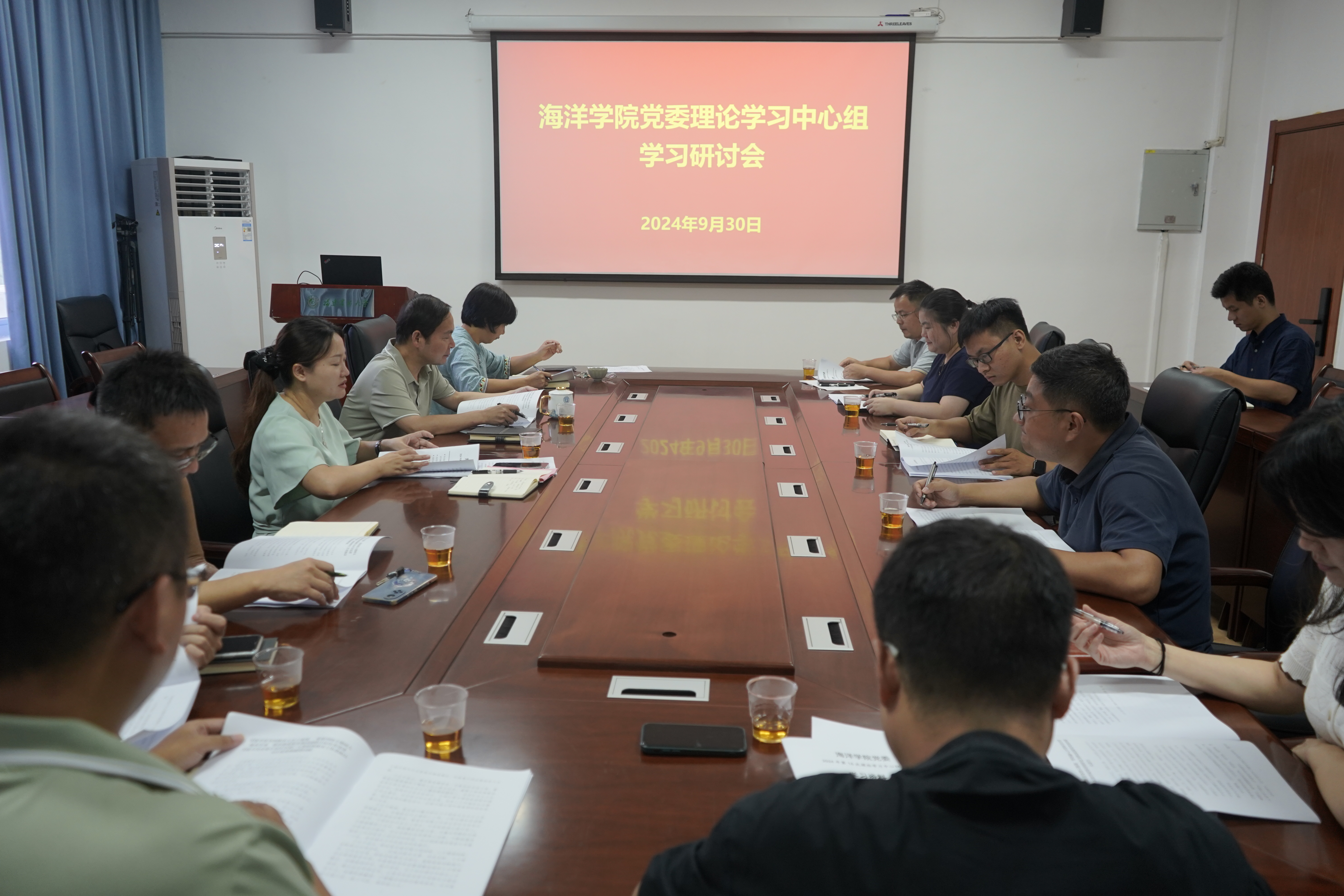 9月30日下午,海洋学院党委在学院会议室召开理论学习中心组学习会,专题学习研讨全国教育大会精神,学院领导班子成员、党支部书记、教学系(实验中心)负责人、科室负责人等参加。会议由学院党委副书记(主持工作)郑亚凤主持。