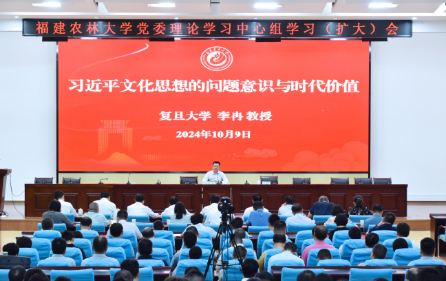 10月9日下午,我校在禧强楼学术报告厅召开校党委理论学习中心组学习(扩大)会,复旦大学马克思主义学院院长、博士研究生导师李冉教授应邀作题为“习近平文化思想的问题意识与时代价值”的专题报告。报告会由校党委书记王建南主持,全体校领导参加。