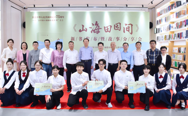 10月11日下午,庆祝中华人民共和国成立75周年——讲好乡村振兴系列故事之三《山海田园间》新书发布暨故事分享会在我校大梦书屋举行。省人大常委会原副主任、省乡村振兴研究会会长潘征,省政府参事、海峡出版发行集团党委委员、副总经理何强,省乡村振兴研究会常务副会长、省文史研究馆馆员陈元邦,省乡村振兴研究会常务理事、政策研究专委会主任委员葛秋,省委宣传部出版管理处处长袁俊华,省委农办秘书处二级调研员王钊龙、海峡文艺出版社副社长谢曦、喜马拉雅福州服务中心总经理陆晓涛,我校党委书记王建南、校党委副书记陈世奎出席活动。