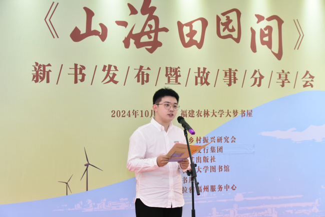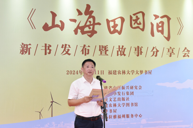 受校党委王建南书记委托,陈世奎代表学校感谢福建省乡村振兴研究会一直以来对学校各项工作的关心支持和厚爱。他指出,此次新书发布会气氛热烈、形式新颖、别开生面、亮点纷呈,呈现出了内容丰富、形式创新、成效明显等特点。他表示,学校将充分发挥学科、平台和专家的特色优势,与省乡村振兴研究会携手共同讲好福建乡村振兴故事,传播福建乡村青年好声音,展现福建乡村振兴的新成效。将用好用活《山海田园间》这本生动教材,作为学校“新农人”故事分享会的重要内容,有机融入学校的思政课程、课程思政和“同上一堂大思政课”当中,教育引导学生学农知农、爱农为农,涵养学生热爱“三农”的情怀,培养更多知农爱农新型人才,激励广大农林学子积极投身乡村振兴事业,为农业农村现代化贡献青春力量。