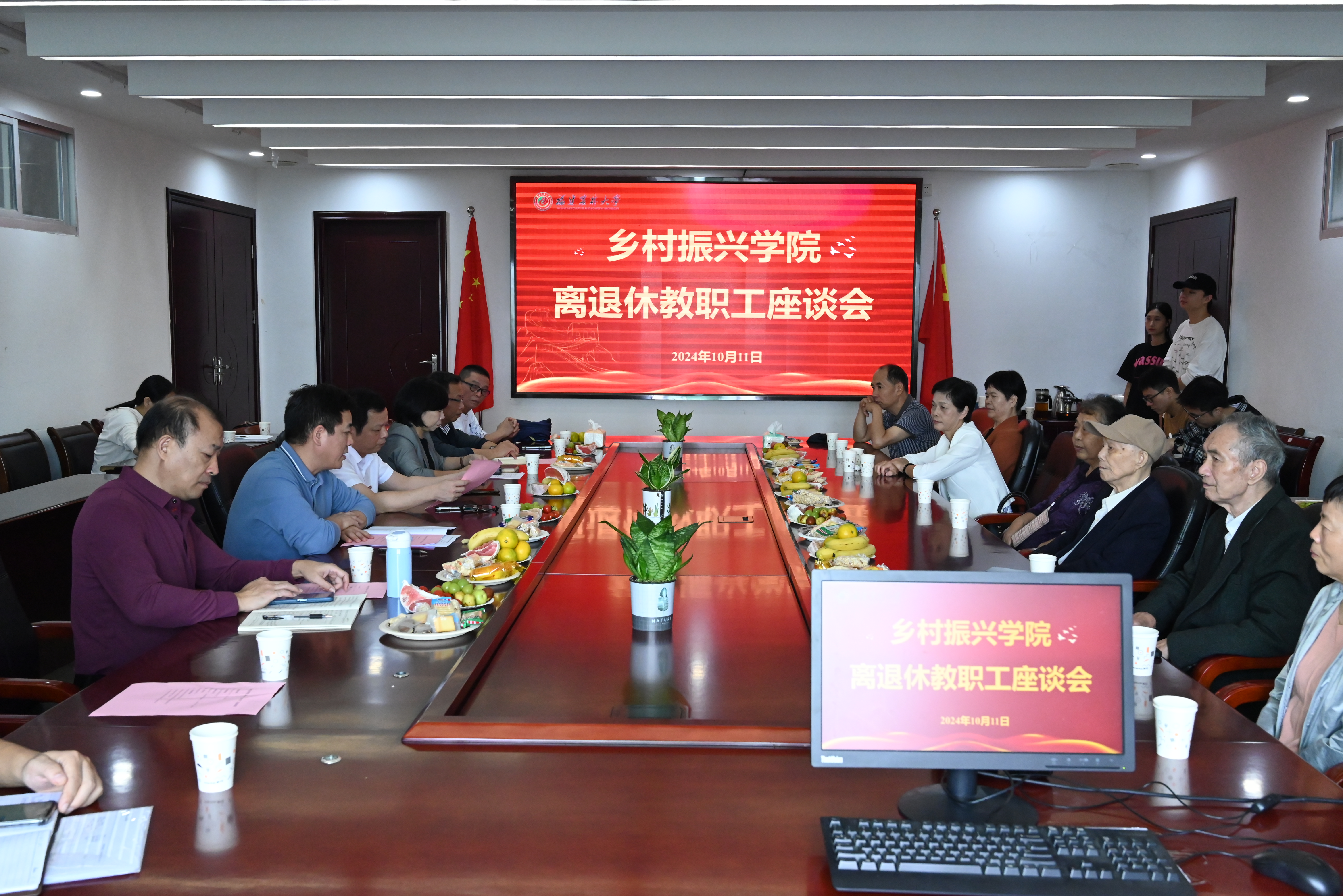 10月11日上午,乡村振兴学院在东苑512会议室召开2024年离退休教职工座谈会。学院领导班子成员、离退休教职工代表、科级干部、辅导员等参会。会议由学院党委副书记陈玲凤主持。