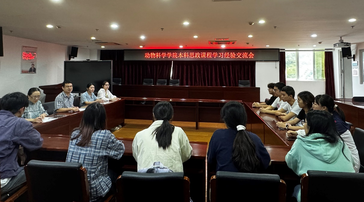 10月10日,动物科学学院在动科楼7层大会议室召开本科生思政课程学习经验交流座谈会。学院副院长阳伏林、本科教育办公室主任高秦嫣、本科生辅导员张淑华、班主任及学生代表参加本次座谈会,会议由阳伏林主持。