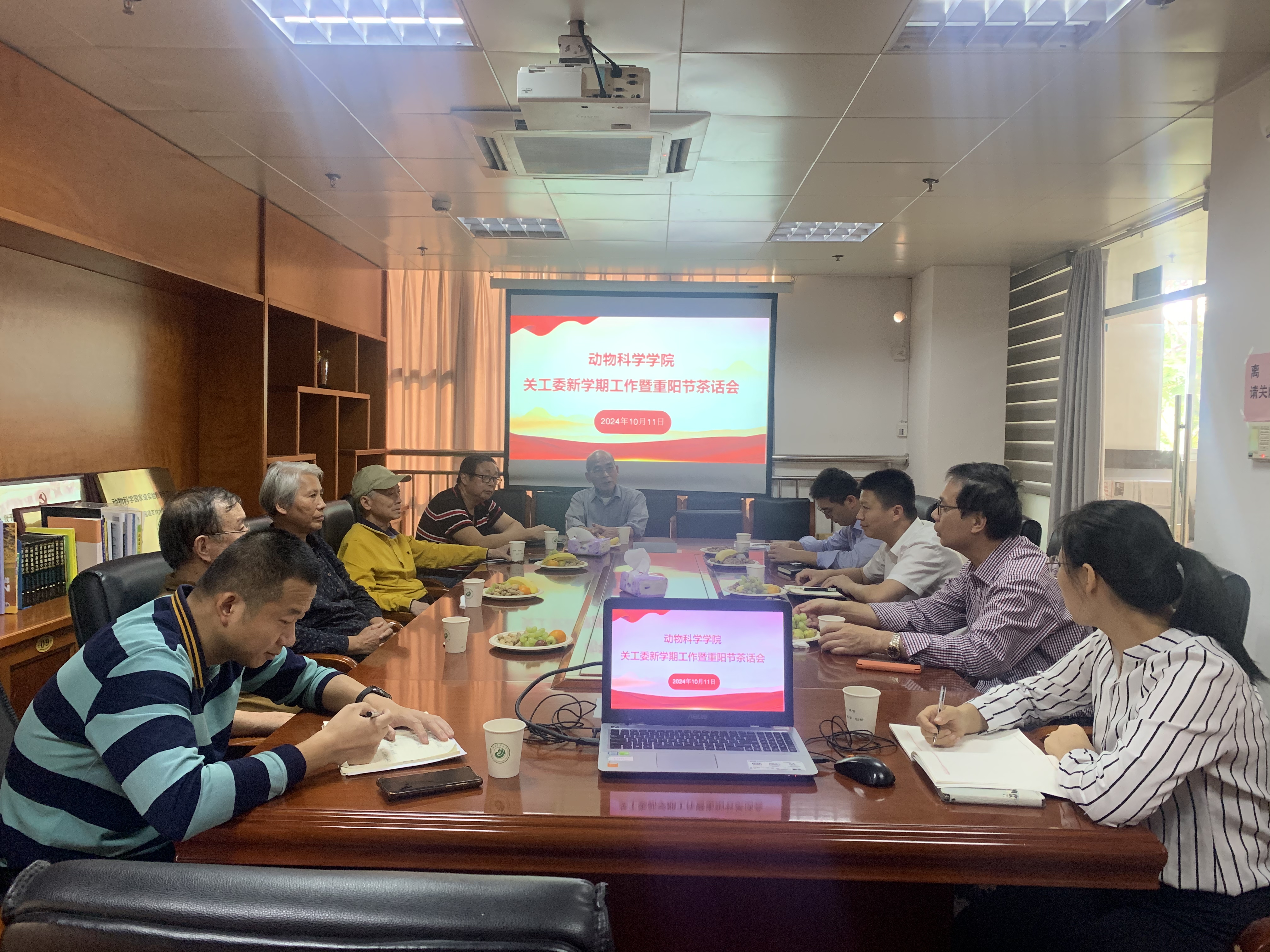10月11日下午,动物科学学院在学院七楼会议室召开新学期关工委工作暨2024年重阳节茶话会。学院党政班子成员、各科室主任、退休教师代表等参加会议,会议由学院党委副书记(主持工作)修新田主持。