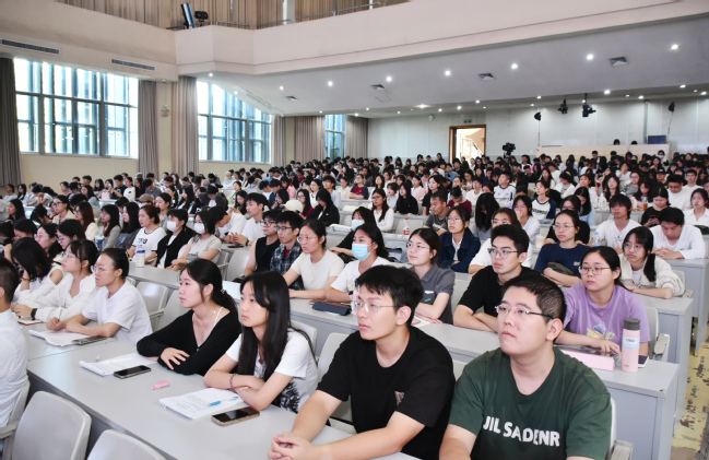 课堂上,谢华安从“自己的人生理想——让大家都有一碗饭吃”引出粮食安全是“国之大者”,指出要实现“中国人的饭碗任何时候都要牢牢端在自己手上”,就要实现种业科技自立自强。接着,他介绍了当前中国粮食生产概况,并从水稻的重要性、水稻育种技术发展和新时代水稻育种展望等方面介绍如何研究超级杂交稻育种。通过技术路线创新、测交方法创新,研创育种新技术育成“明恢63”等恢复系和“汕优63”等杂交稻品种。与此同时,他介绍了再生稻高产栽培、耐储藏新品种“福香占”等科研成果的最新进展。最后,他勉励大学生立大志、明大德、成大才、担大任,发扬艰苦奋斗精神,勇于攀登科学高峰,做矢志不移的奋斗者,助力乡村振兴。