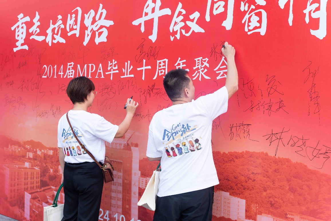 适逢88周年校庆,我校公共管理与法学院积极推进MPA校友联谊工作。其中,2014届公共管理硕士(MPA)53名校友于10月19日返校举行了以“重走校园路,再叙同窗情”为主题的毕业十周年聚会,举办了师生座谈会、“重走校园路”和参观校史馆等活动。同日,公共管理硕士(MPA)教育中心还组织了“开云网页版MPA研究生校友2024年度羽毛球联谊赛”。