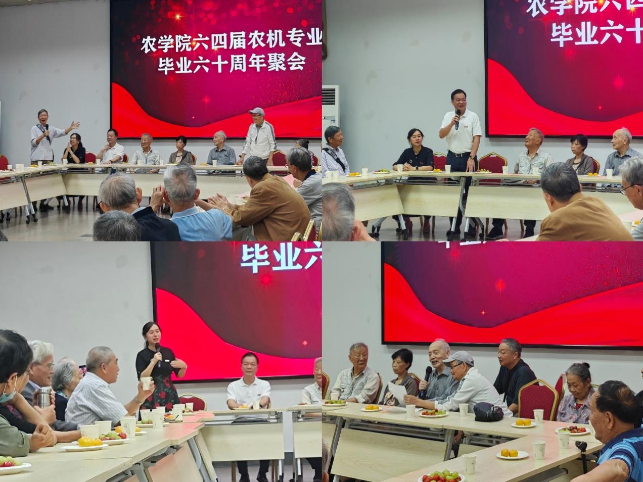 92岁高龄的原农机系老主任黄幼昌教授,对64届校友能重聚感到欣喜,他回忆曾经的教学时光,为在座优秀的学生们感到自豪,并祝愿校友们身体健康、家庭美满。