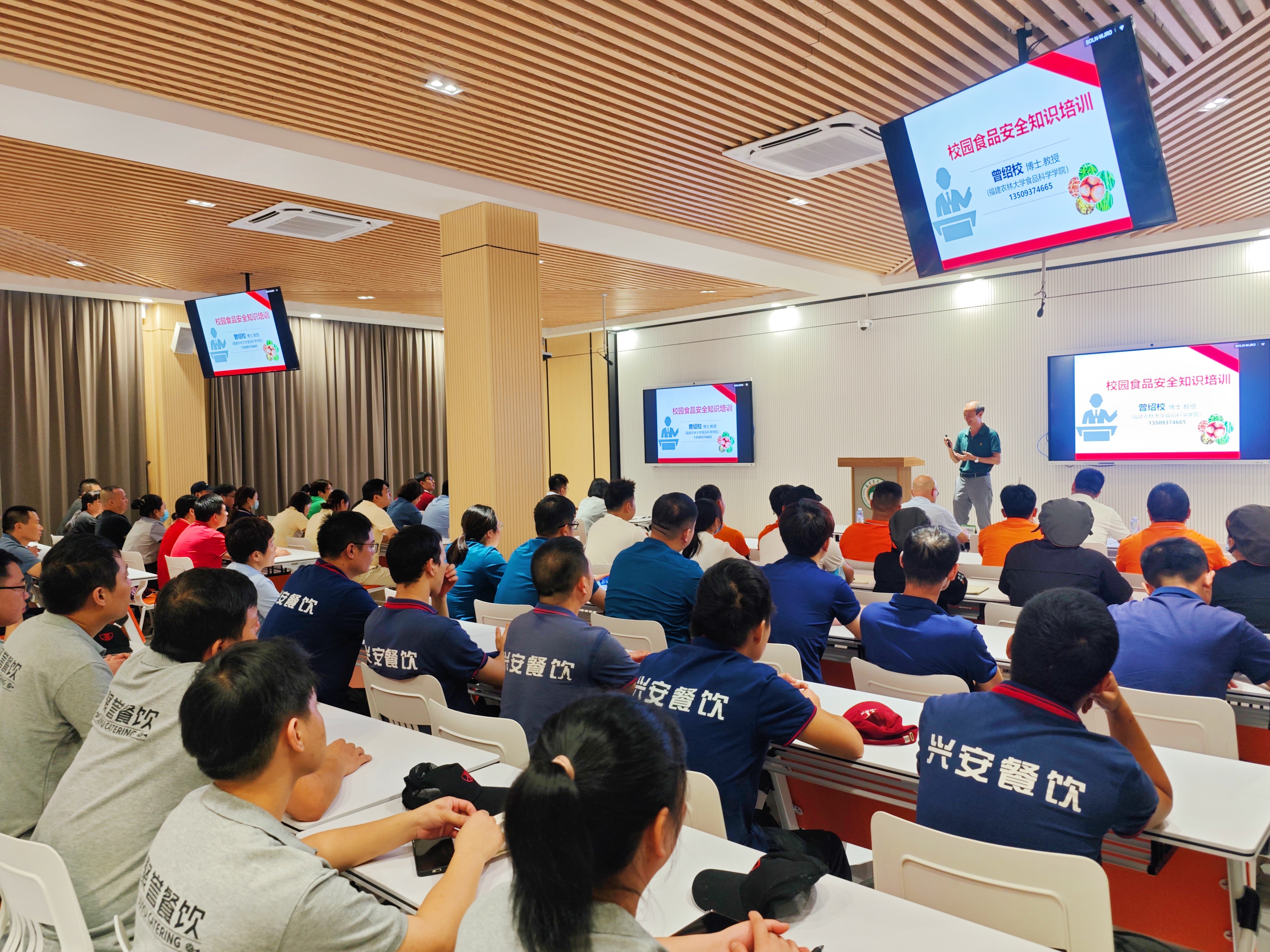 培训会上,曾绍校结合对《食品安全法律法规体系》和《学校食品安全与营养健康管理规定》的解读,从食品安全的定义和涵义、食品安全管理制度、食品安全过程控制和原料控制、从业人员食品安全规范操作等方面进行了详细的讲解,并结合相关案例,深入浅出地讲解了食品安全的重要性、食品安全法规政策、食品污染的来源及危害、食品储存与加工的注意事项等内容。培训过程中,大家认真听讲,并与专家进行了良好的互动。