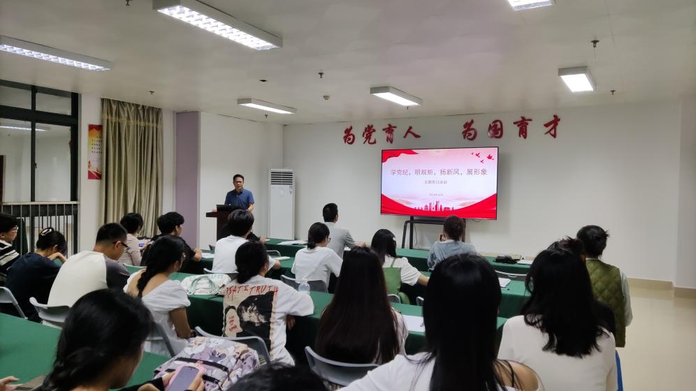 10月17日晚,菌草与生态学院在金综楼B401会议室开展“学党纪,明规矩,扬新风,展形象”主题党日活动。学院党委副书记李晓辉,研究生党支部书记杨小飞、徐敏睿,全体研究生党员参加活动。