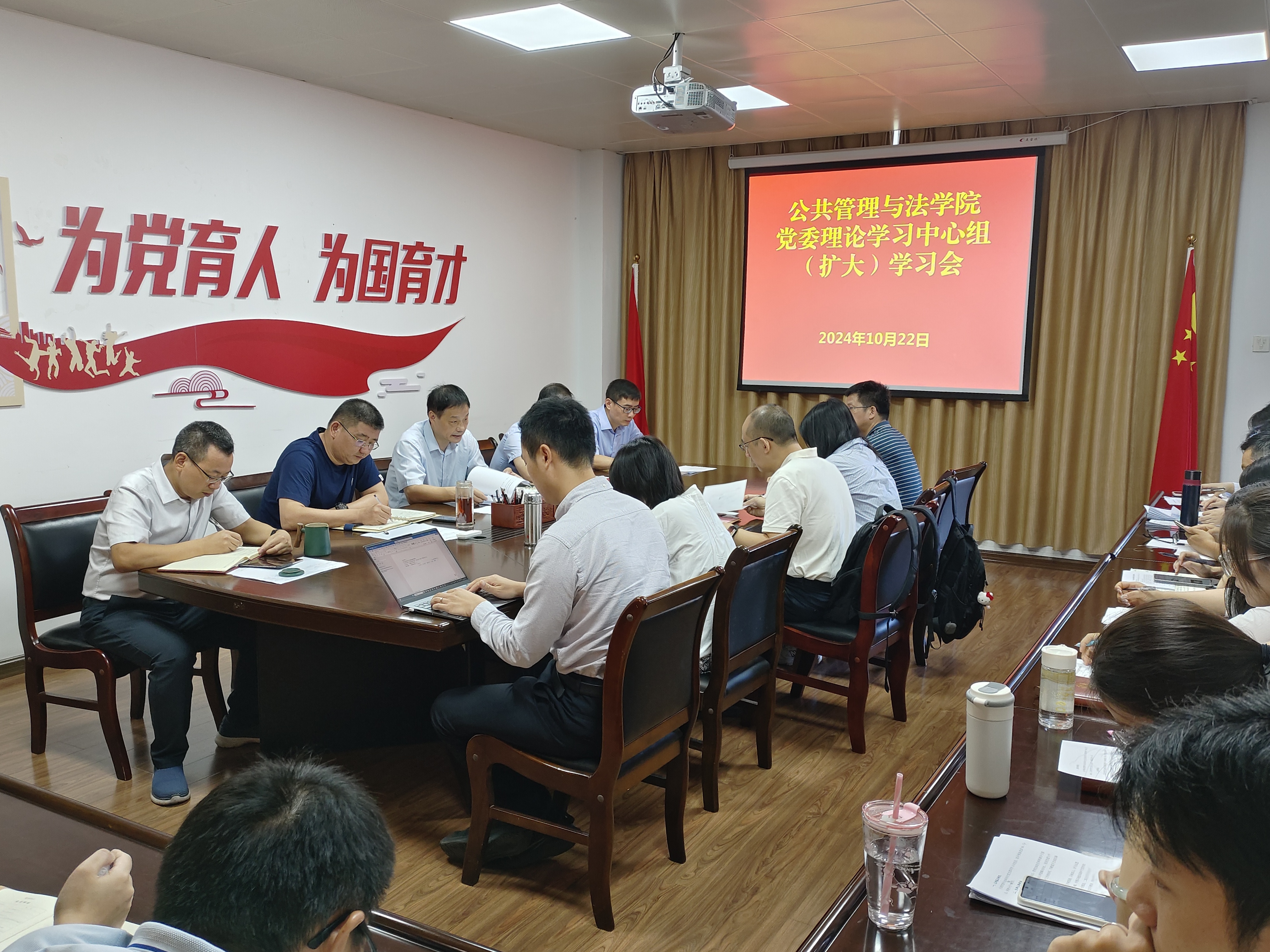 10月22日上午,公共管理与法学院党委召开理论学习中心组(扩大)学习会,深入学习贯彻习近平总书记在福建考察时的重要讲话精神。会议由学院党委书记曾起郁主持,学院党委理论学习中心组成员,党支部书记参加会议。