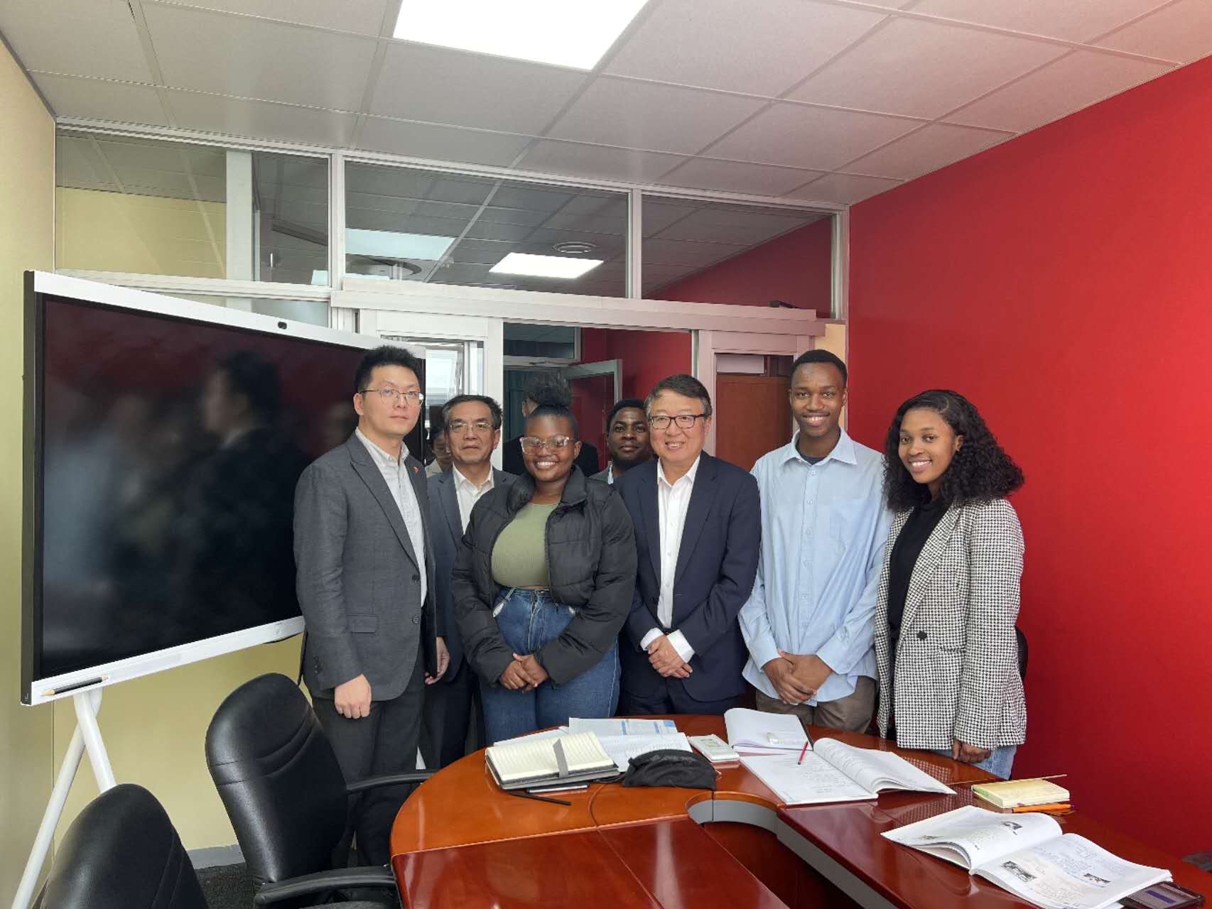 德班理工大学副校长兼孔子学院外方院长弗卢菲洛·内马博拉(Fulufhelo Nemavhola)首先代表德班理工大学向吴鹏大使的到访表示热烈欢迎,感谢大使对德班理工大学以及孔子学院发展的关心。随后,孔子学院中方院长吴林向大使详细汇报了德班孔院的教学开展情况、在促进中南教育交流与合作以及在“中文+”职业技能培训方面所作出的努力。