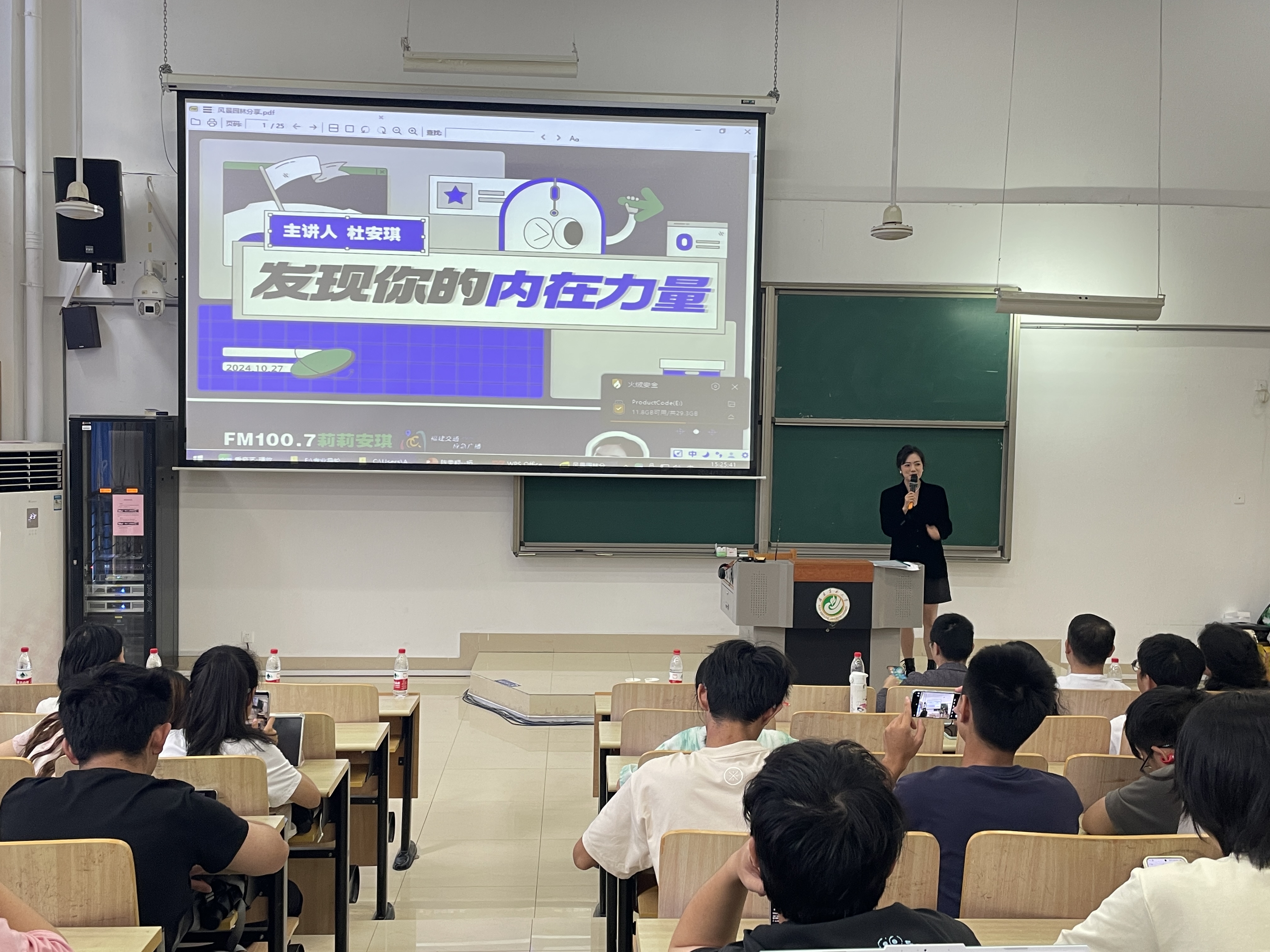 福建省广播影视集团广播全媒体中心首席主持人、FM100.7福建交通应急广播主持人杜安琪以“发现你内在的力量”为主题,分享了自己从“误打误撞”进入广播行业到成为一名优秀主持人的经历。她强调了风景园林专业对她设计能力、感知能力和表达能力的培养,鼓励同学们要谦虚好学,积极进取,并保持对世界的好奇心,不断探索人生的可能性。