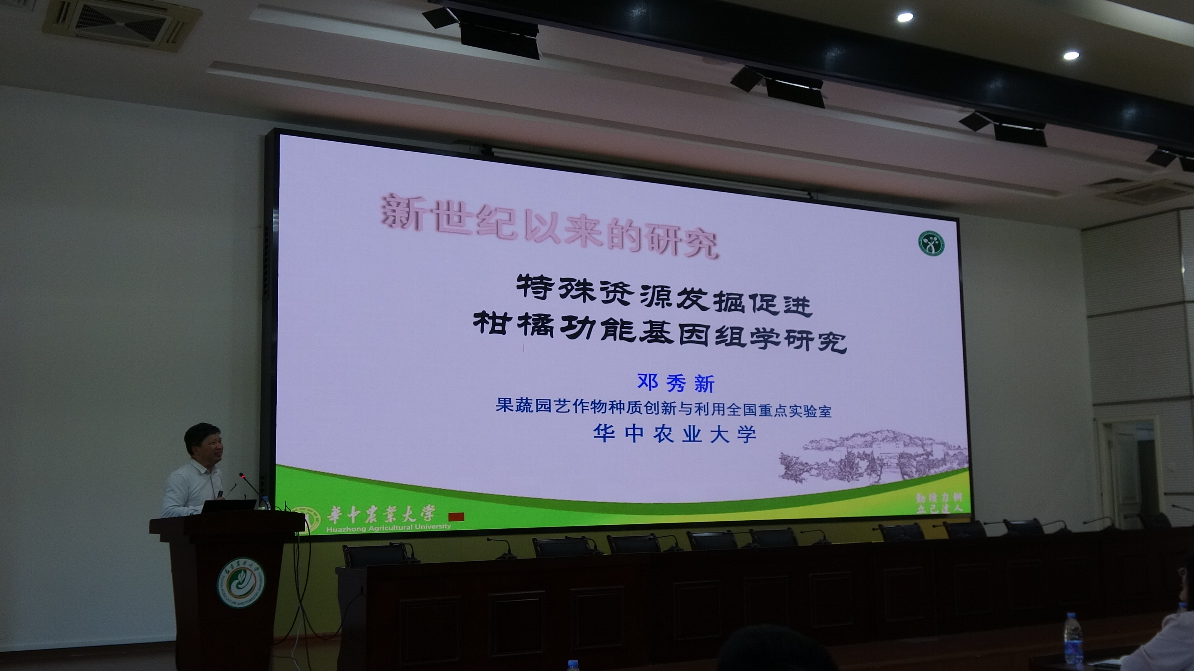 报告中,邓秀新院士介绍了其团队历时二十余载成功利用细胞工程育种解决柑橘种籽多这一难题,有力推动了我国柑橘产业发展。他谈到,他与他的团队首次发掘到野生的类似一年生作物的模式材料——单胚山金柑,并利用该特殊材料以及正向遗传学方法快速定位到影响柑橘色泽、多胚和油胞发育等性状的关键基因,阐明其分子机制;更重要的是,对柑橘功能基因组的研究进一步指导了柑橘育种和市场销售,切实为种植农户带来了好处。例如,其团队培育的果皮棕色、口感香甜的“宗橙”,在湖北秭归县成功落地,加以对农户在种植和销售方面进行指导,“秭归宗橙”带动了当地农业经济的发展,让种植农户们端上了脐橙的“金饭碗”。