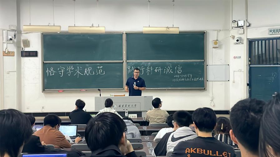 王李进以深入浅出的方式,为同学们详尽阐述了学术道德的核心准则,其中包含了研究生阶段需遵循的学术规范、道德规范以及典型学术不端案例,着重强调了学术诚信的重要性,助力研一同学在科研初期确立基本方向与准则。