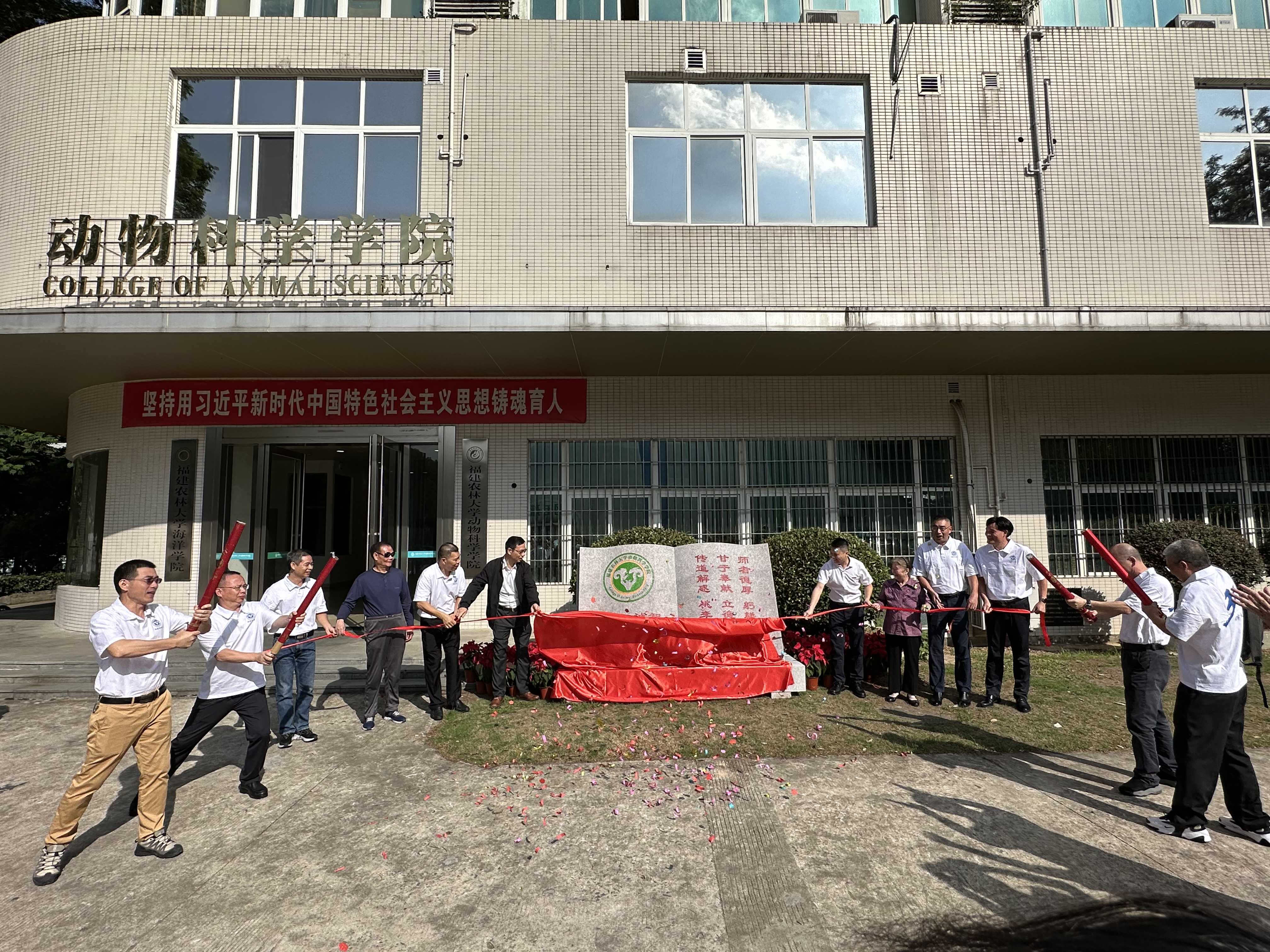 近日,动物科学学院在新圣农楼门前广场前举行94届畜牧兽医专业毕业生捐赠雕塑揭幕仪式。94届畜牧兽医专业全体毕业生,学院退休教师和学院师生代表,学院党委书记修新田、院长陈吉龙等50余人参加仪式。