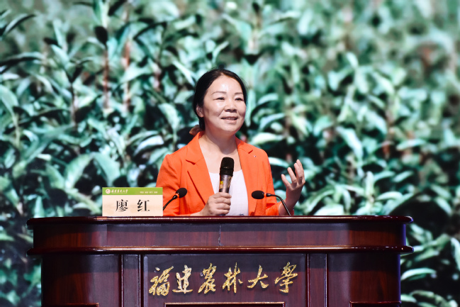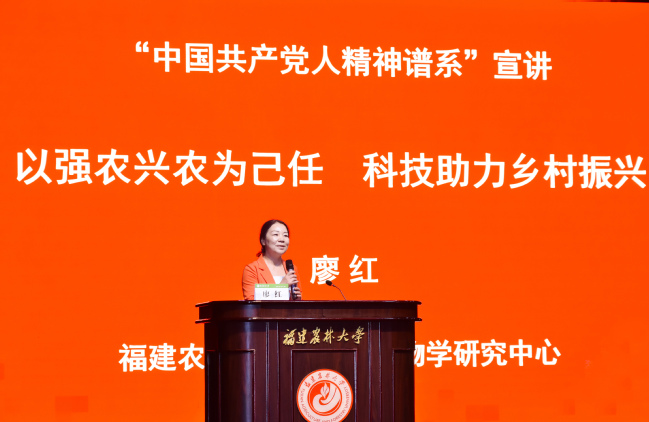 廖红以“以强农兴农为己任 科技助力乡村振兴”为主题,结合自身服务我省茶文化、茶产业、茶科技统筹发展,促进文旦柚等优质特色农产品绿色发展,开展再生稻全程机械化高效栽培示范等推动科技创新与产业创新深度融合的亲身经历,用生动质朴的语言讲述了其作为一名中国共产党党员、高校教师和科技特派员,坚持把论文写在田野大地上,“做给农民看、领着农民干、带着农民赚”的精彩故事,生动诠释了科学家精神,教育引导广大青年学生在感悟中国共产党人精神谱系、体悟中华人民共和国成立75周年光辉历程中传承红色基因、赓续红色血脉,努力成长为担当民族复兴重任的时代新人。