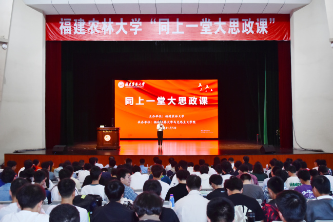 11月5日上午,我校举行“中国共产党人精神谱系”宣讲报告会暨“同上一堂大思政课”活动,全国高校“中国共产党人精神谱系”宣讲团专家、第十四届全国人大代表、我校根系生物学研究中心主任廖红教授作专题报告。金山校区大礼堂设主会场,旗山校区和安溪校区设分会场。校党委副书记陈世奎出席活动,校学生工作领导小组成员单位负责人、辅导员和新生代表等2000多名师生参加。