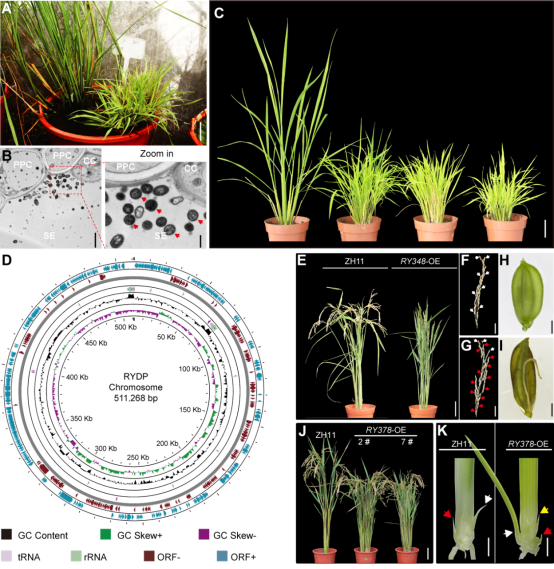 近年来,植原体(Phytoplasma)在水稻中的传播已成为全球农业的重大挑战。近期,开云网页版吴建国教授团队在国际权威期刊Plant Physiology(植物生理学)发表题为:“Virulence effectors encoded in the rice yellow dwarf phytoplasma genome participate in pathogenesis”(水稻黄萎病植原体基因组编码的毒力效应子参与致病机制)的研究论文。该研究利用PacBio HiFi测序技术,成功解码了水稻黄萎病植原体(Rice Yellow Dwarf phytoplasma, RYDP)的全基因组序列,并揭示了该病原体如何通过其效应蛋白破坏水稻的正常发育,进而导致严重的产量和经济损失。