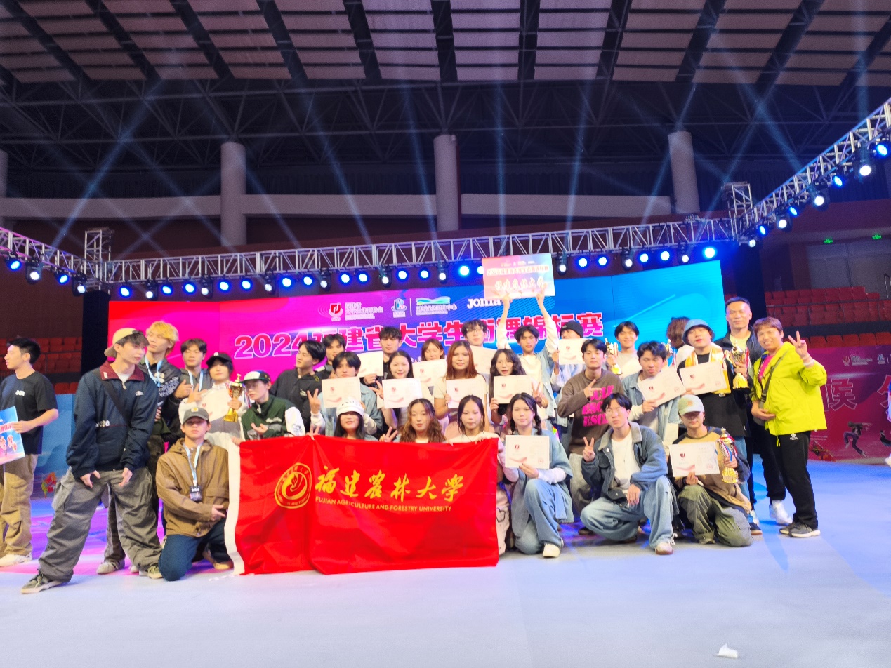 由福建省大学生体育协会、南平市体育局、浦城县人民政府联合主办的2024年福建省大学生街舞锦标赛于11月2日-4日在南平市浦城举行。本次比赛吸引了省内各大高校近400名大学生街舞爱好者参与,节奏感强烈、富有变化的音乐,舞者动感极致的身姿和绚丽的表情,无不充分展现了福建省大学生的活力与激情。我校街舞运动代表队表现更是精彩夺目,连获佳绩,勇夺6金3铜,实现团体总分三连冠。