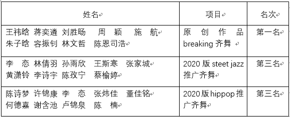 齐舞比赛获奖名单: