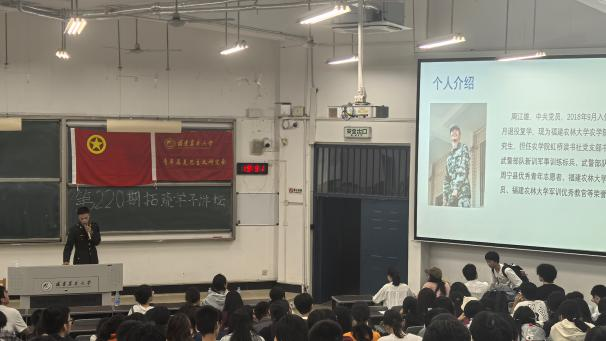 龙曦同学分享了她的创赛经历、保研经历以及学习方法,重点讲述如何准备和参加创赛,帮助同学们搭建与创赛之间的桥梁。钟巧灵同学介绍了她的学习经验与保研过程,启发同学们如何科学规划自身学习目标。周江雄同学生动地描绘了他热血沸腾的军旅生活,并详细解读征兵政策,鼓励同学们积极投身国防事业,为国家繁荣与发展注入新生力量。