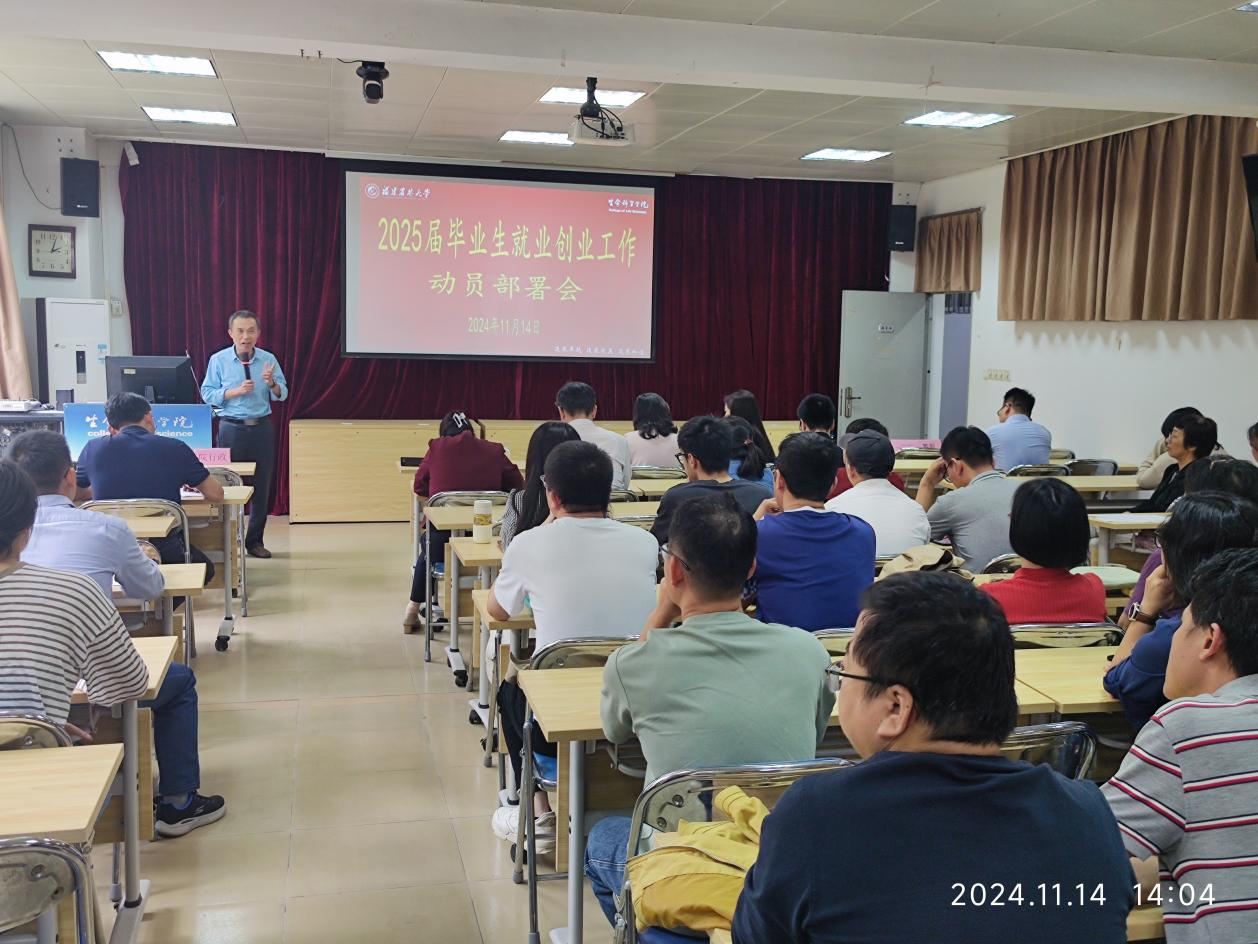 11月14日,生命科学学院在学院414会议室召开2025届毕业生就业创业工作动员部署会,学院党委书记余顺兴、院长秦源等学院党政班子成员和全体教职员工参加会议。
