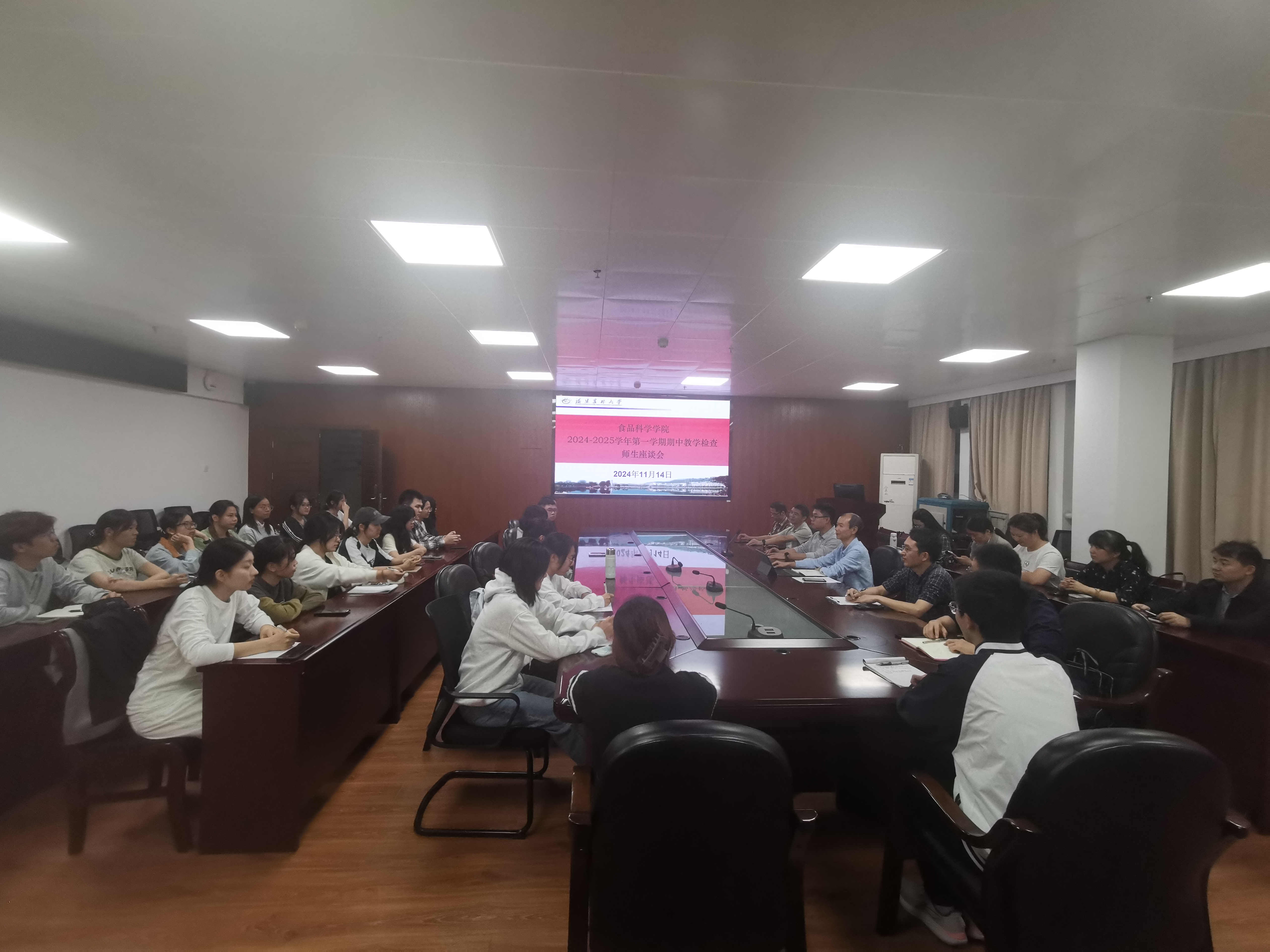 根据教务处《关于开展2024-2025学年第一学期期中教学检查的通知》要求,11月14日下午,食品科学学院在310会议室组织召开2024—2025学年第一学期期中教学检查师生座谈会。副院长曾绍校主持会议,各系正副主任、各中心正副主任、部分班主任、本科教育办公室人员及本科生各班级学生代表参加会议。