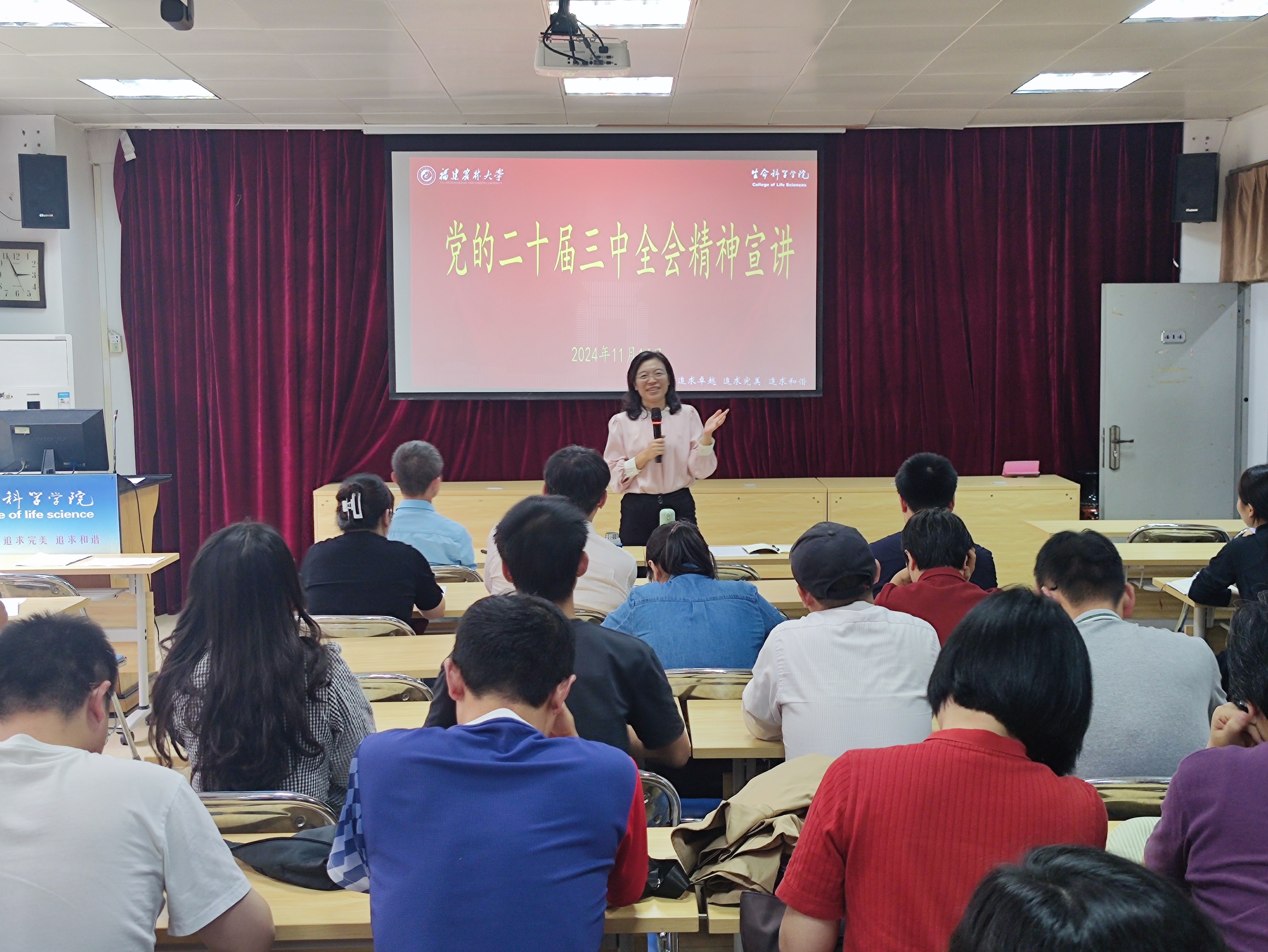 院长秦源为全体教职工作党的二十届三中全会精神专题宣讲,强调高校作为人才的主要阵地,全院教师要认真学习贯彻党的二十届三中全会精神,深刻认识进一步全面深化改革的重要性和必要性,坚持以立德树人为根本任务,着眼于人才培养、科研创新和社会服务等重点工作,以钉钉子精神抓好学校和学院各项改革任务的落实。