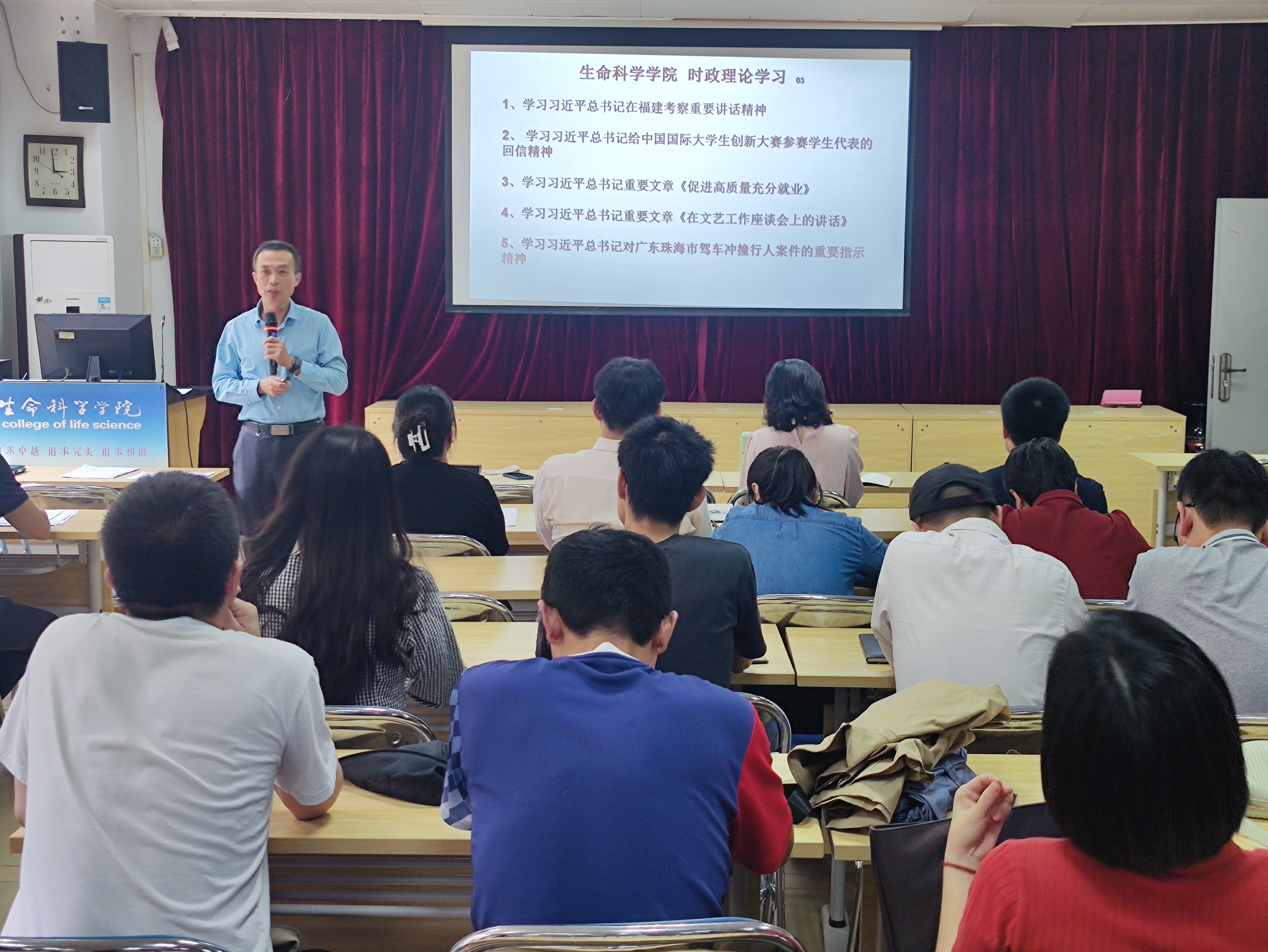 11月14日下午,生命科学学院在生科楼414召开教职工大会,学院全体教职工参加,会议由院党委书记余顺兴主持。