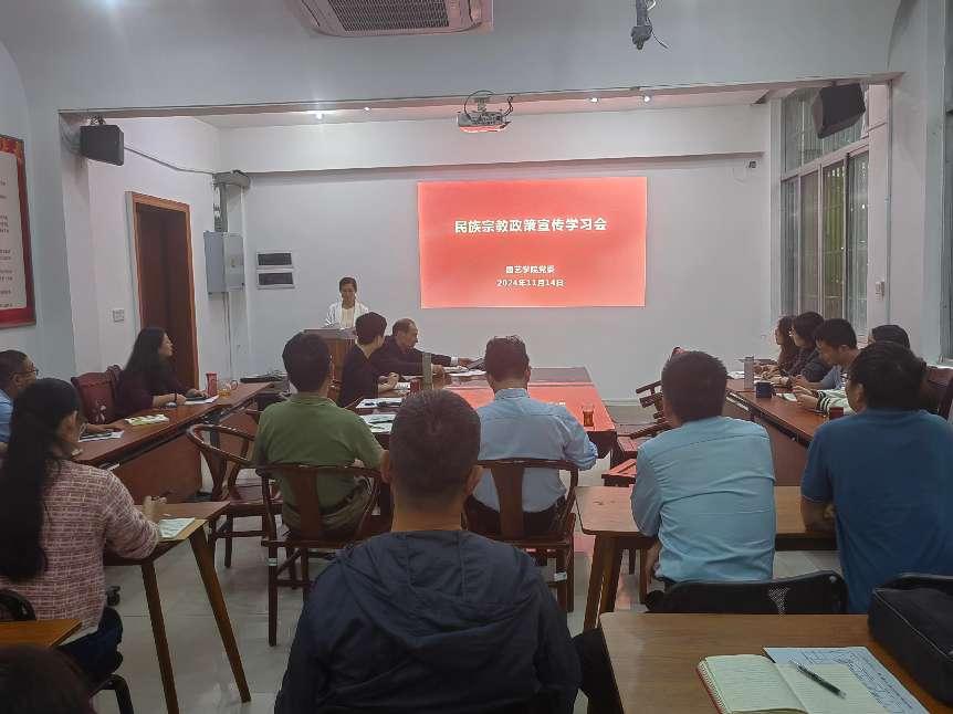 会上,学院党委统战委员、副院长曾黎辉带领大家集中学习了我国民族宗教相关政策。