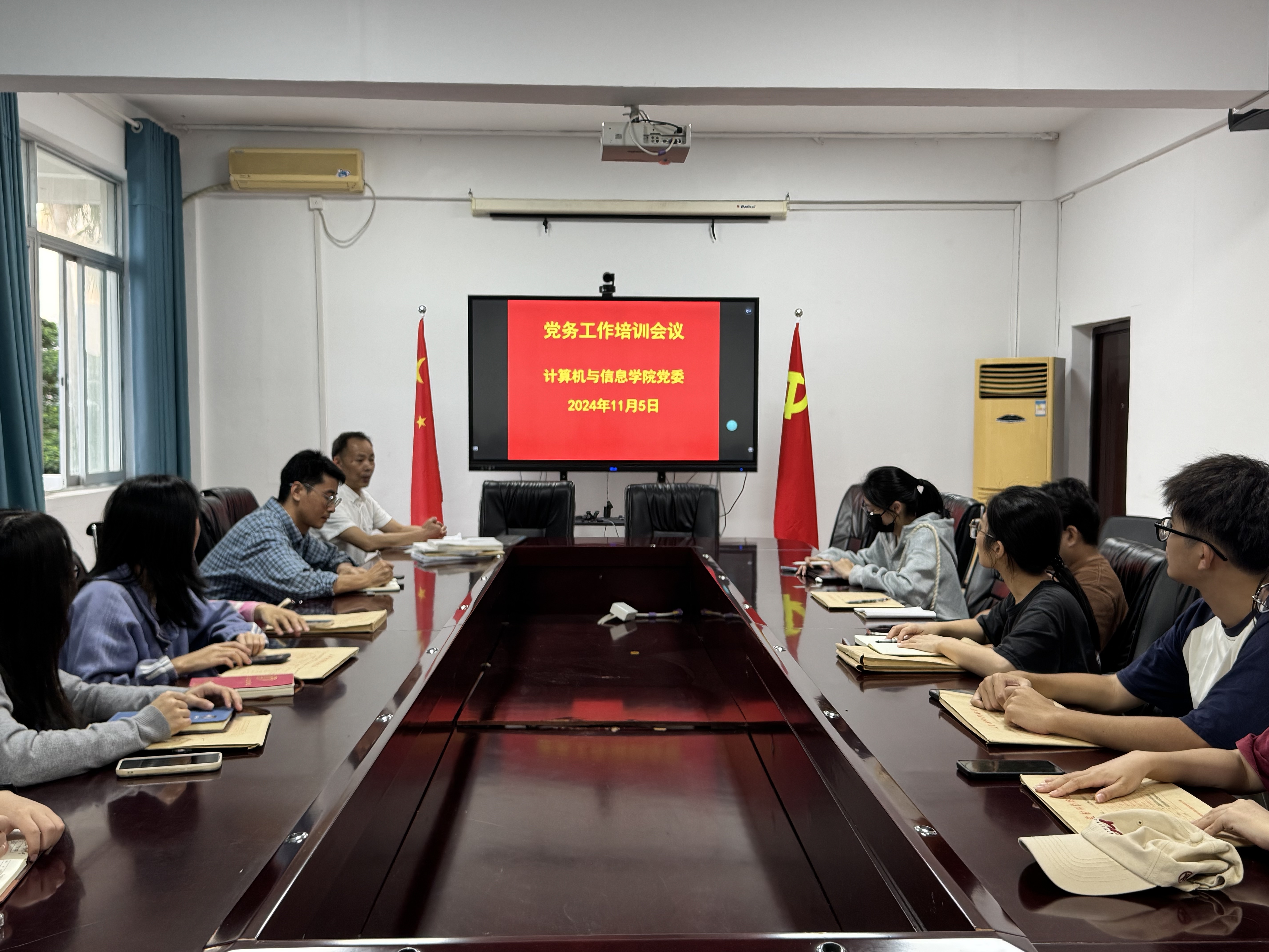 11月5日下午,计算机与信息学院党委在302会议室召开党务工作培训会议,学生党支部书记、支部委员共计27人参加了培训,培训会由学院党委组织员张文元主讲。