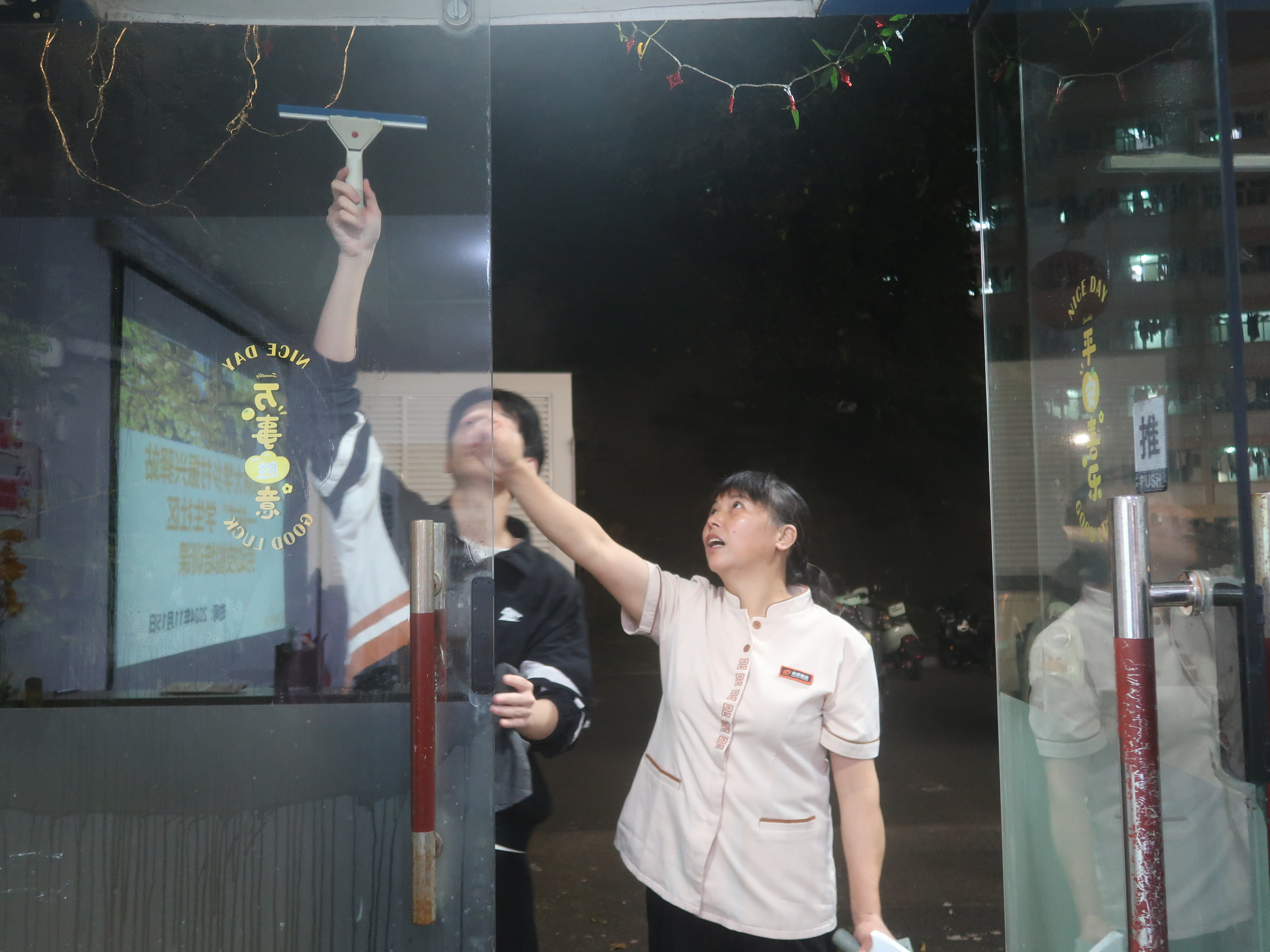 随后,张秀宝与同学们一同实操。同学们纷纷积极动手参与,现场气氛热烈,同学们不仅在实践中掌握了正确的保洁方法,更深刻地感受到了劳动带来的成就感和快乐。