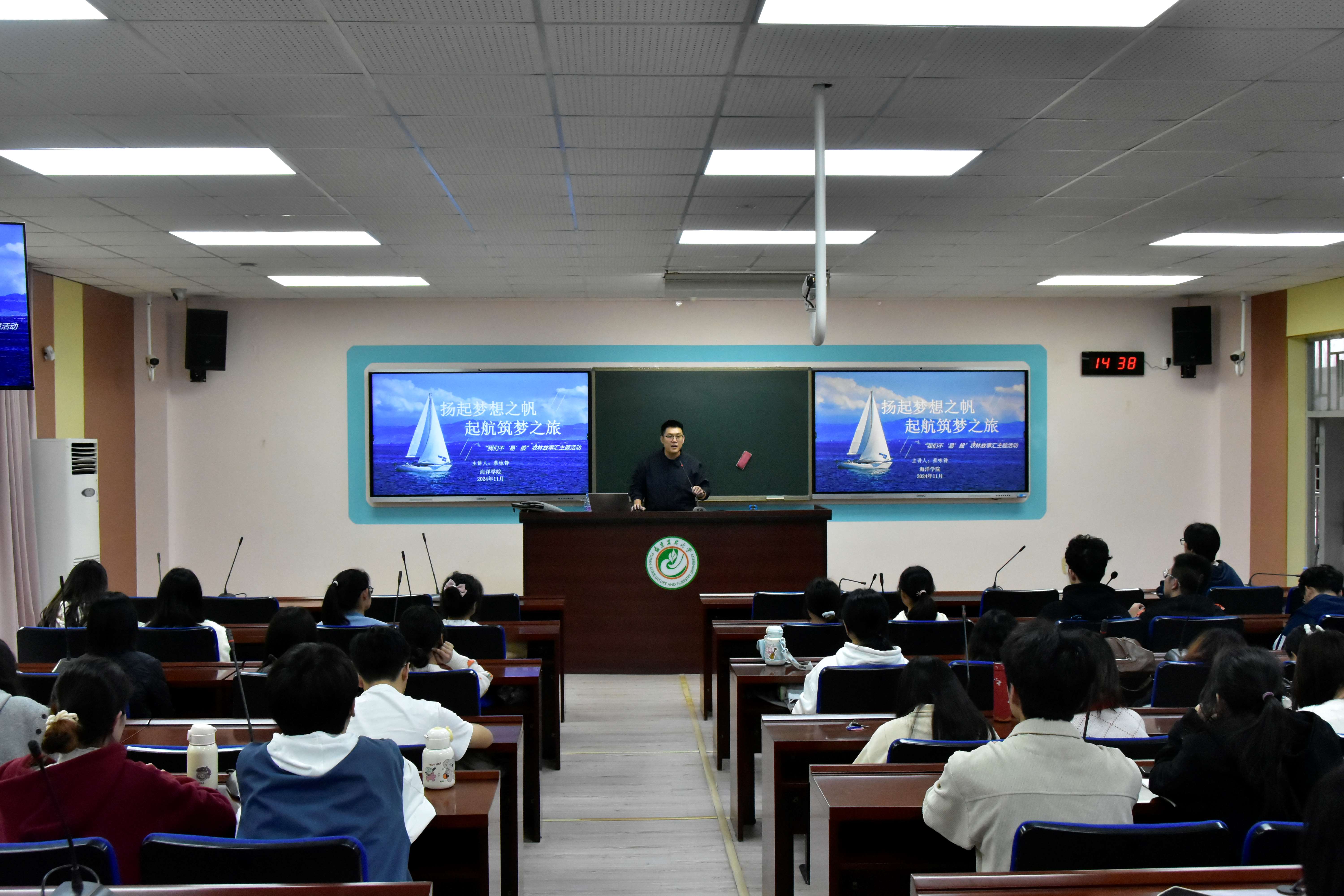 学生积极参与交流,现场气氛热烈。“与优秀校友面对面交流,我犹如在迷雾中看到了一束光,找到了追赶的榜样,明确了努力的方向,让我对自己的未来充满了信心和期待。”聆听了优秀校友的分享后,2022级水产养殖学专业本科生林颖徽深受鼓舞和启发。她坚定地表示,在接下来的日子里将会以优秀校友为榜样,不负韶华,努力学习,让青春在实践与奉献中绽放绚丽之花。