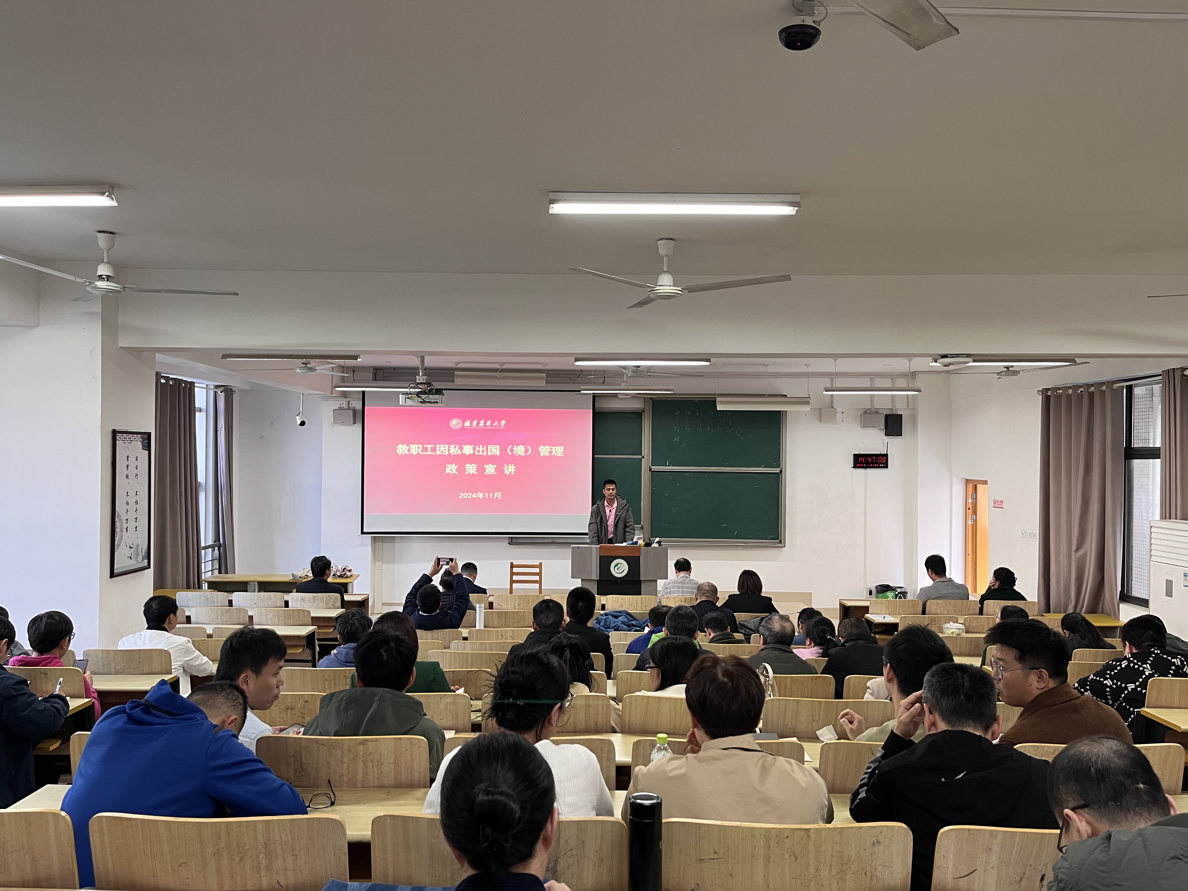 11月28日下午,交通与土木工程学院在旗教204召开全院教职工大会,会上进行了教职工因私事出国(境)管理政策宣讲,学院党政班子成员、全体教职工参加会议。