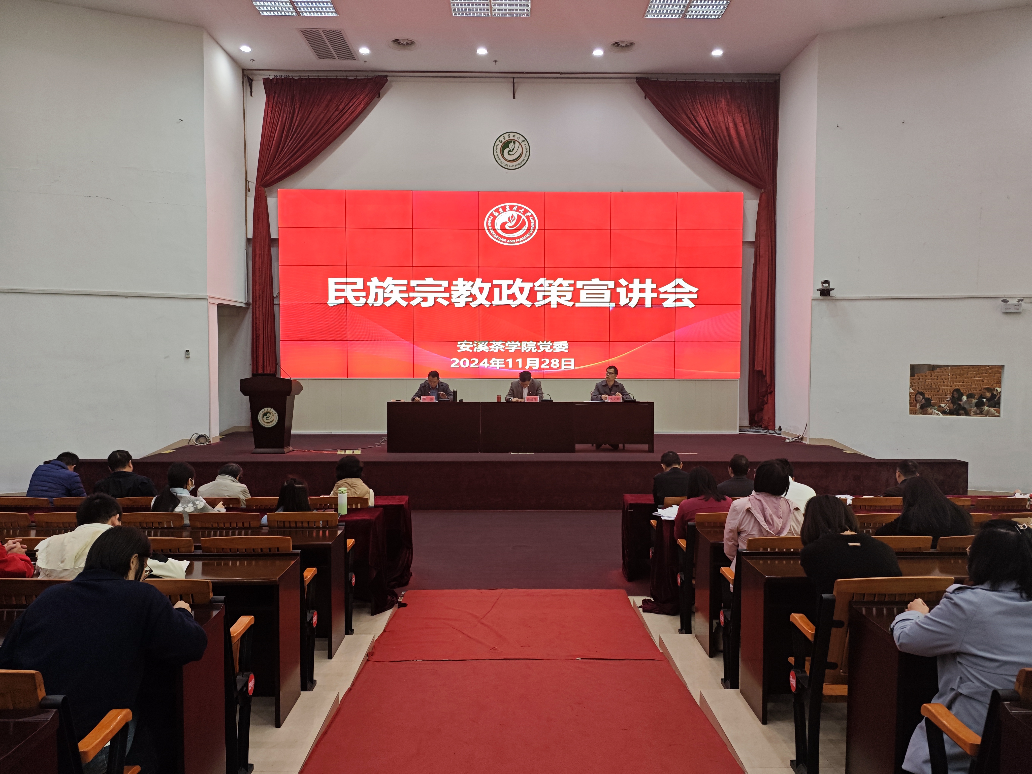 11月28日下午,数字经济学院在安溪校区诚智报告厅召开全院教职工大会暨政策宣讲会,学院党委书记黄成茂主持会议,全体教职工参加会议。