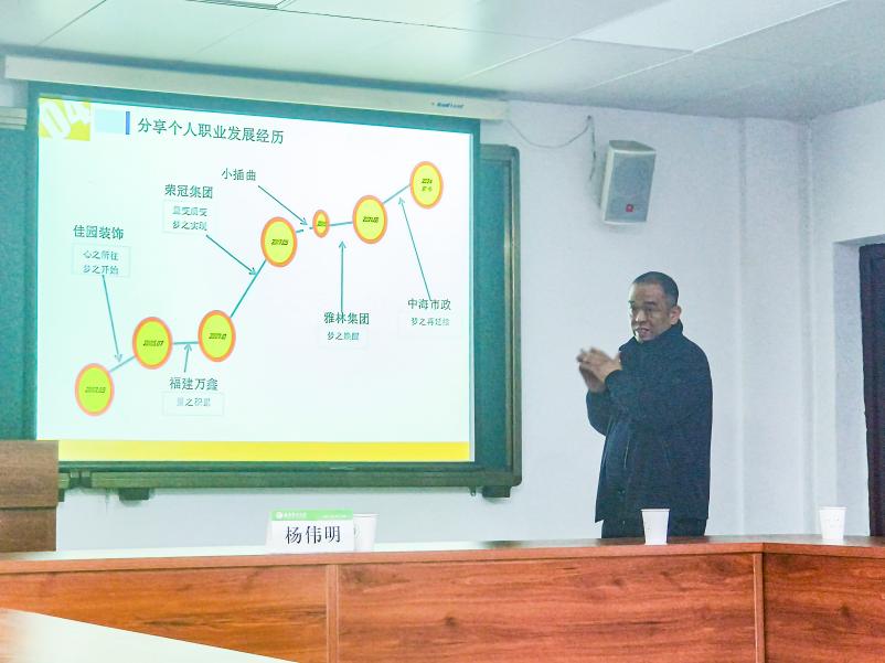 为进一步夯实耕读教育工作品牌,11月21日下午,园艺学院在园艺楼214举办“耕读学堂”首场讲座沙龙活动。本期讲座沙龙活动以“对话校友,共促成长”为主题,邀请2003届园艺专业优秀校友、中国海洋(厦门)市政工程发展有限公司常务副总经理杨伟明先生担任主讲嘉宾,学院党委副书记康恩慧、副院长钟凤林、辅导员及本科生40多人参加交流活动。