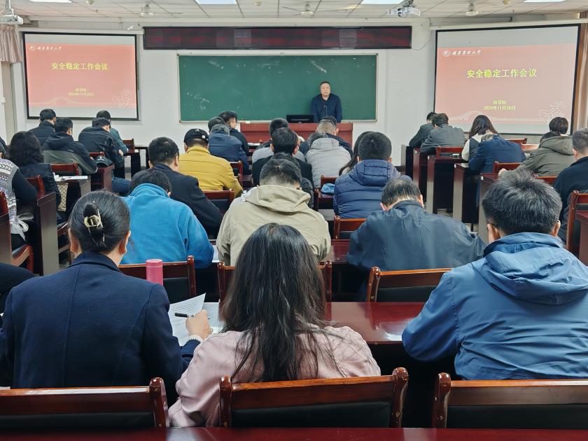11月28日,林学院在田C215召开安全稳定工作会议,会议由学院党委副书记(主持工作)余坤勇主持,全院教职工参加。