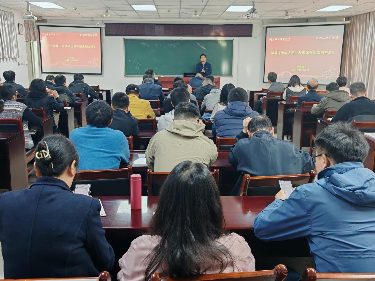 为加强全体教职工的保密意识,提升保密工作的能力和水平,11月28日,林学院在田C215组织《中华人民共和国保守国家秘密法》学习会,会议由学院党委副书记(主持工作)余坤勇主持,全体教职工参会。