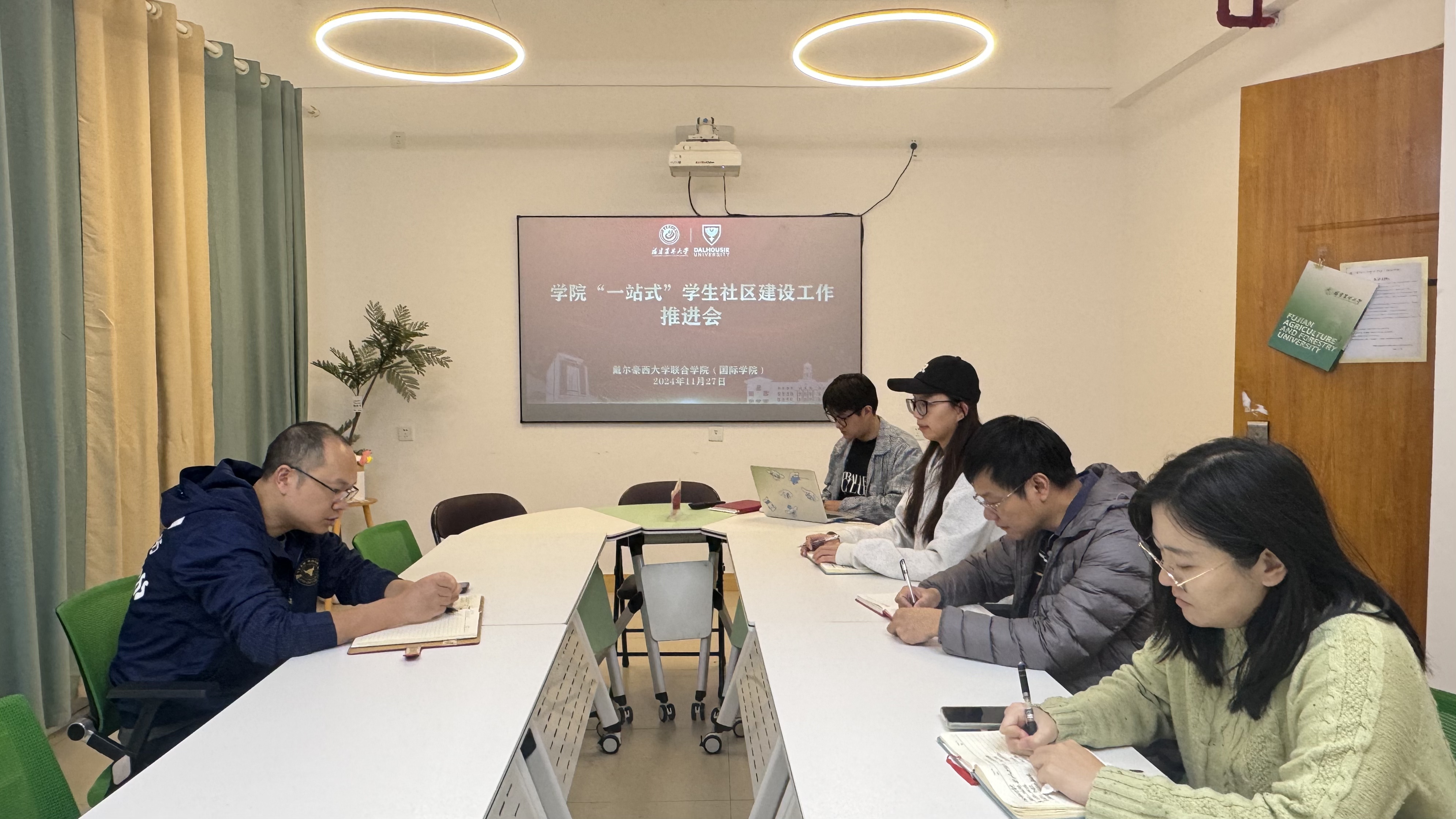 11月27日下午,戴尔豪西大学联合学院(国际学院)在学院“一站式”学生社区召开学院“一站式”学生社区建设工作推进会,会议由学院党委副书记刘敏主持,各年级辅导员参加会议。