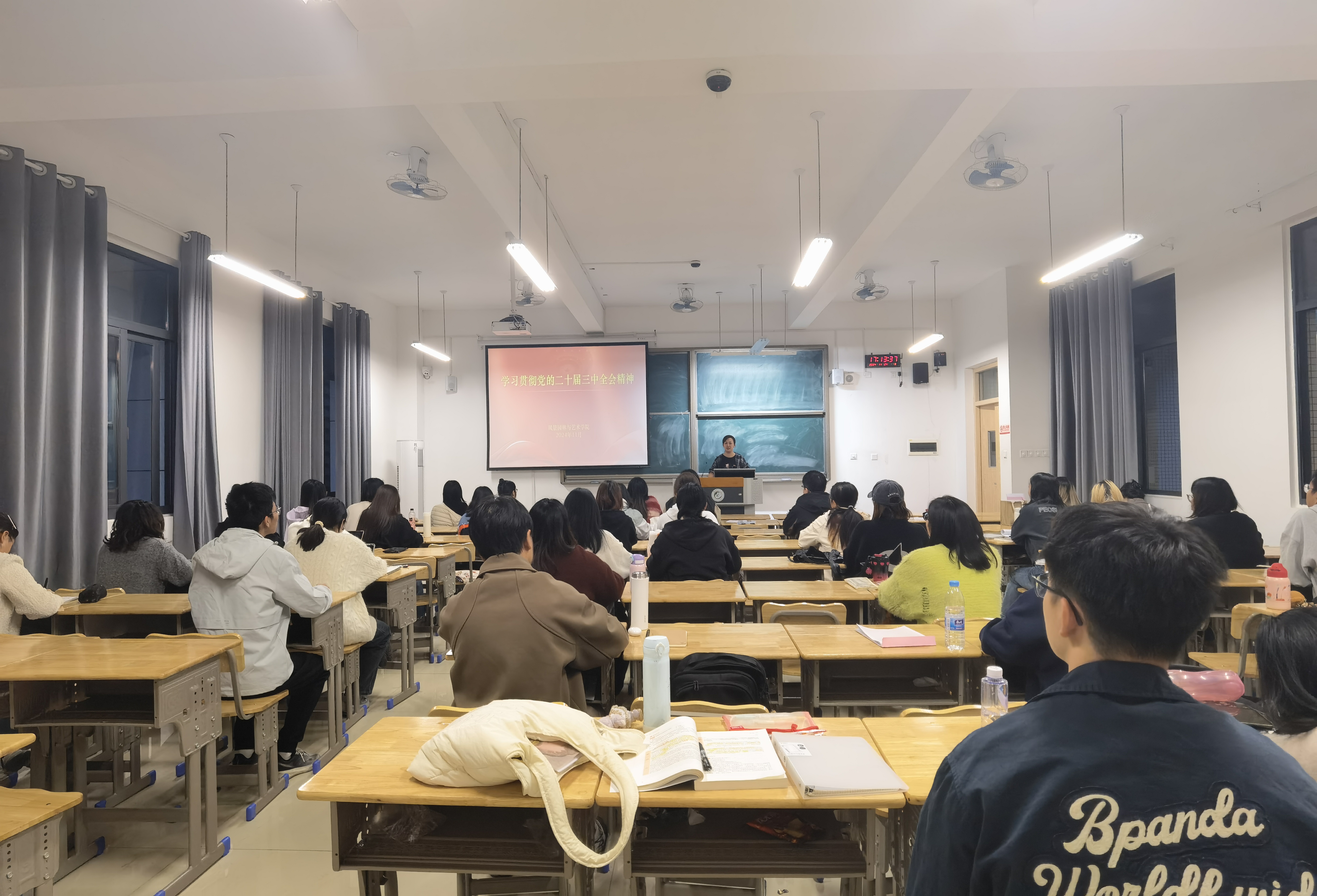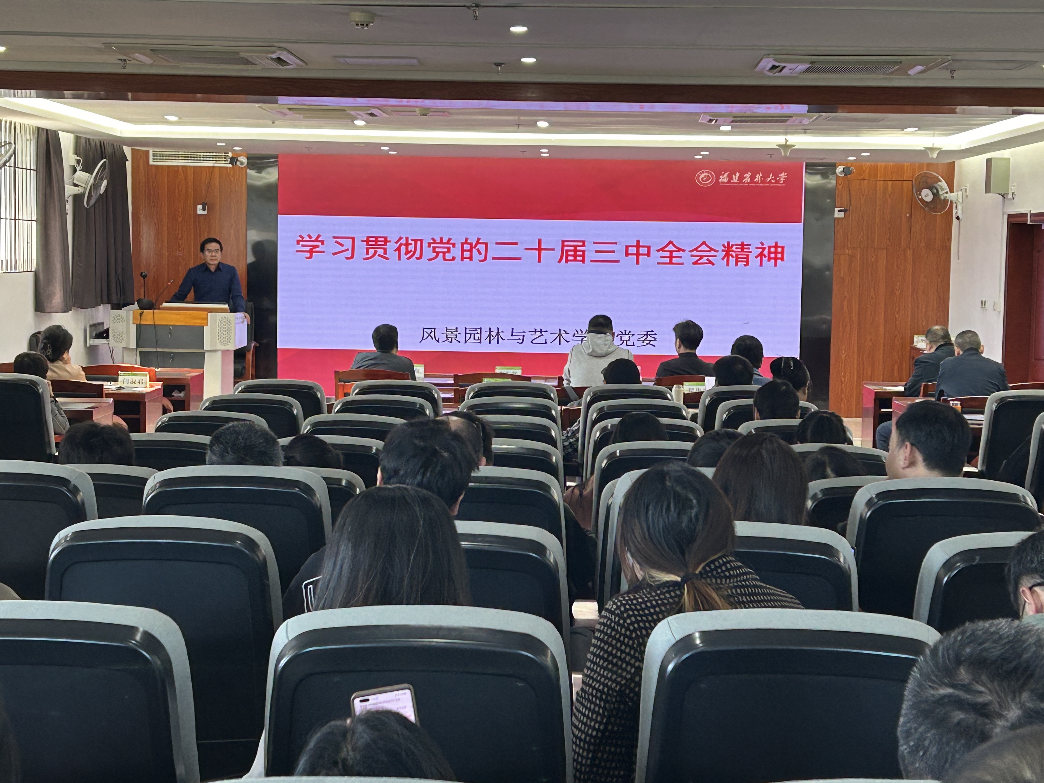 11月28日下午,风景园林与艺术园林学院在旗综1204会议室举行学习贯彻党的二十届三中全会精神专题学习会。学院党委书记雷国铨担任宣讲人,全院教职工参加学习会。