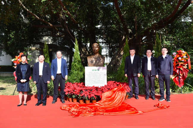 揭幕仪式上,赵树丛、兰思仁、陈照瑜、吴伟平、蔡武华和俞白楠共同为俞新妥纪念铜像揭幕。