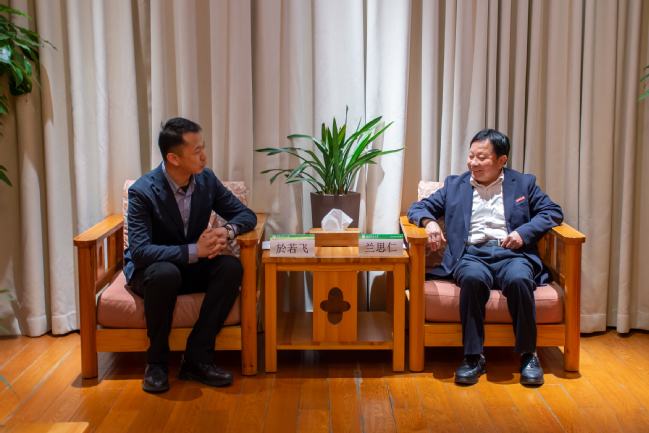 兰思仁代表学校对於若飞副书记的到来表示欢迎,并简要介绍了学校的基本情况、办学特色以及服务甘肃生态建设等有关工作情况。他表示,在闽甘两省各级党委政府和有关部门的支持下,学校助力定西脱贫攻坚和乡村振兴,在生态林建设、兰州南北两山绿化、菌草技术应用以及推动蜂产业、经果林产业和中草药产业发展方面取得了较好的成效。下一阶段,学校将继续发挥学科、平台和人才优势,进一步在助力甘肃优势特色产业、林下经济、花卉产业、兰州南北两山绿化提升等方面作出应有的贡献。