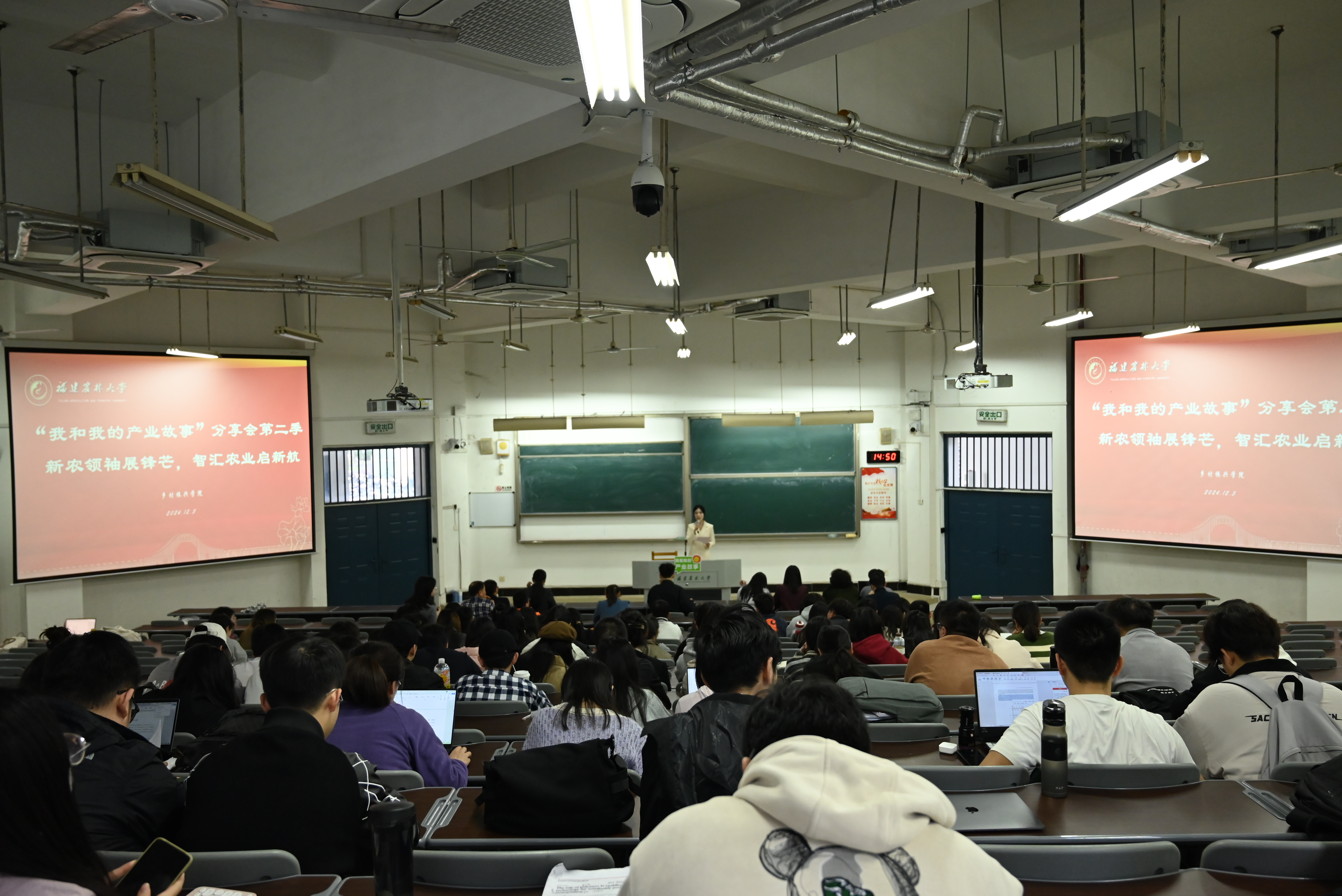 12月5日下午,乡村振兴学院“我和我的产业故事”第2季分享会——“新农领袖展锋芒,智汇农业启新航”于创新楼102举办。活动邀请国家中药材基地共建共享联盟农委会副主任委员、福建西岸生物科技有限公司总经理郑生文,连城县人文生态发展促进会创始人、连城县丰海竹木业有限公司傅胜,福建万果农资有限公司总经理杨桂海三位现代农业产业领军人才培训班学员代表分享。省级示范现代农业产业领军人才培训班班长叶梅芳、乡村振兴学院农村区域发展系副主任马改艳、青年马克思主义者培训工程培训班学员、全校涉农学院研究生,共计200余人参与本次分享会。