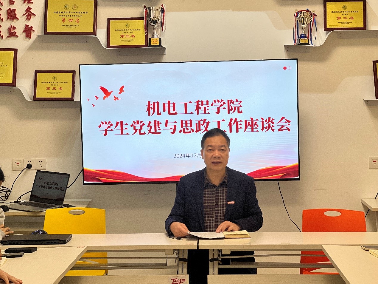 12月5日下午,机电工程学院在“一站式”学生社区(立人驿站)召开学生党建与思政工作座谈会,部署做好学院学生党建和思想政治教育工作。学院党委书记陈为德、副书记杨莹、全体辅导员、各年级学生党员代表共30人参加会议,会议由杨莹主持。