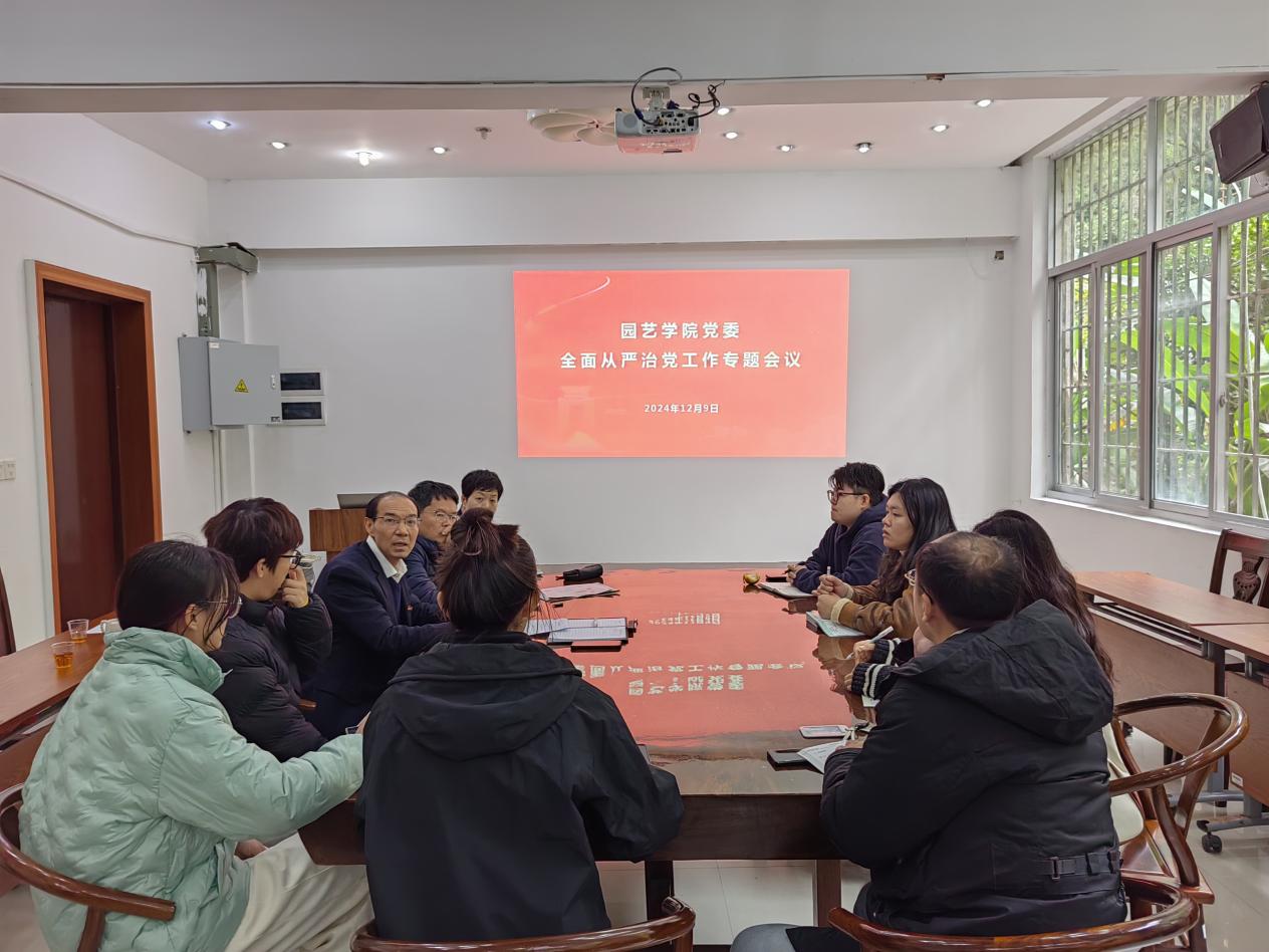 12月9日上午,园艺学院党委召开2024年下半年全面从严治党工作专题会议。学院党委委员、各党支部书记参加会议。学院党委书记林金科主持会议并讲话。