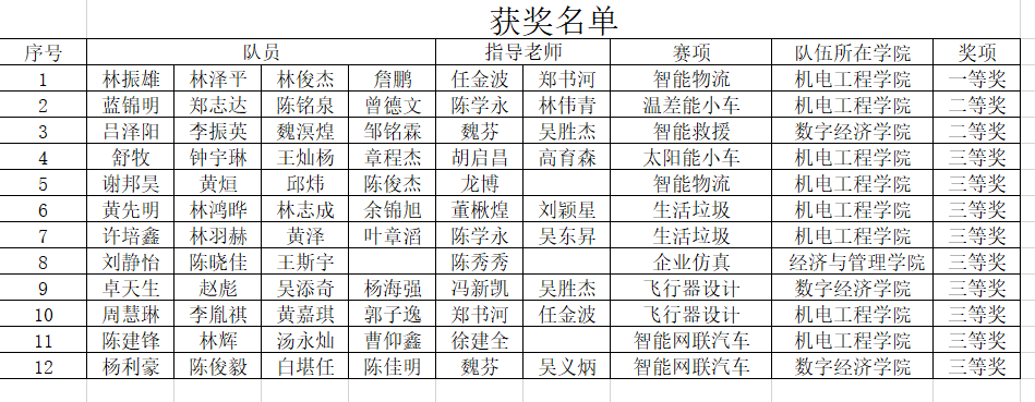 11月29日至12月1日,由福建省教育厅主办,福建省工程实践与创新能力大赛组委会和福州大学承办的2024年福建省大学生工程实践与创新能力大赛暨2025年中国大学生工程实践与创新能力大赛福建赛区选拔赛在福州大学举行。我校荣获大赛优秀组织奖,并斩获一等奖1项(智能物流第一名),二等奖2项(分别为温差电动车和智能救援第四名),三等奖9项的好成绩。