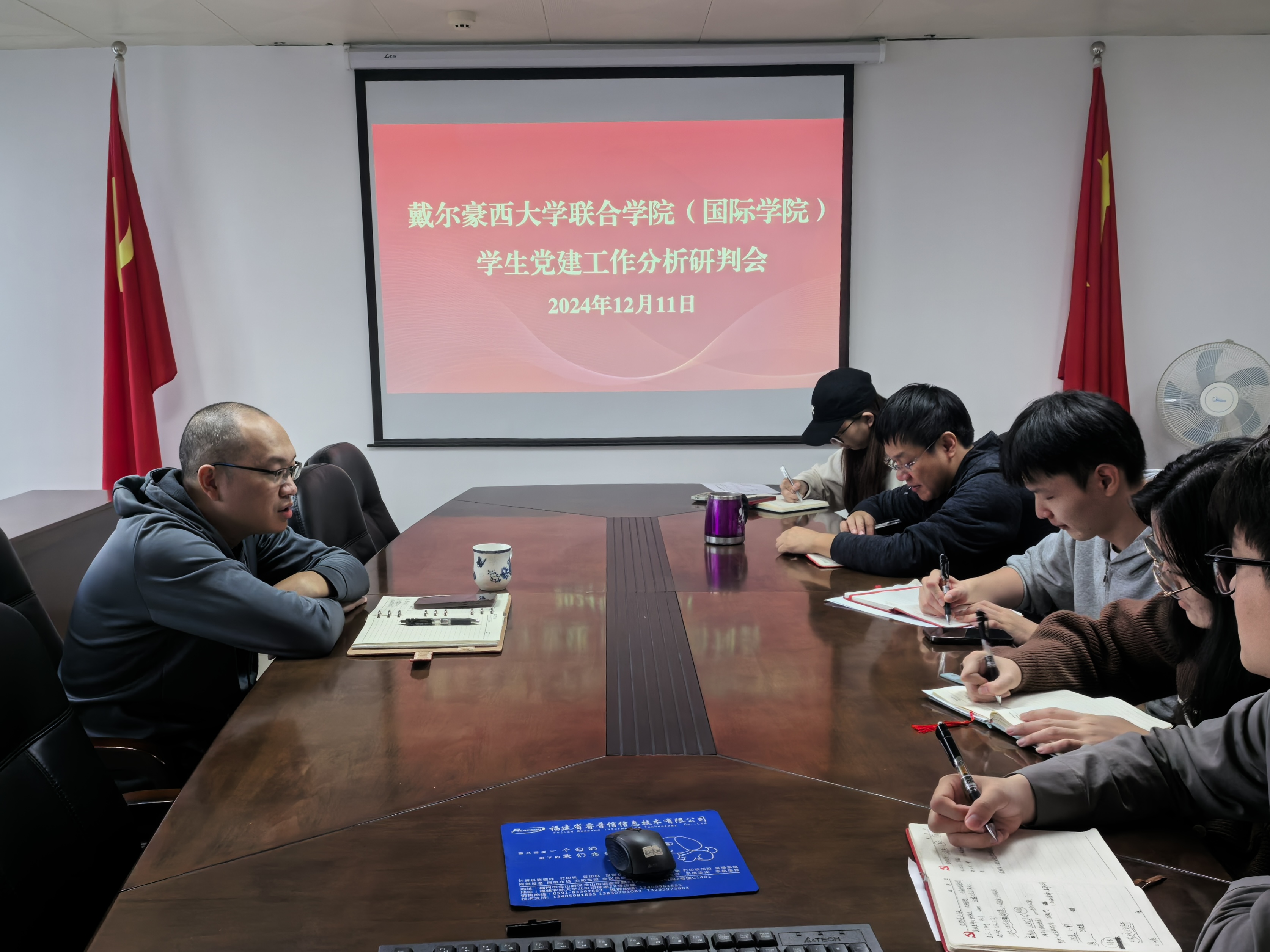 12月11日下午,戴尔豪西大学联合学院(国际学院)在旗山综合楼901会议室召开学生党建工作分析研讨会,会议由学院党委副书记刘敏主持,全体辅导员参加会议。