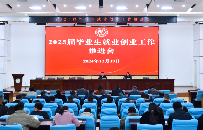 2024年12月13日下午,我校在禧强楼学术报告厅召开2025 届毕业生就业创业工作推进会,校长兰思仁、校党委副书记曾华平出席会议。会议由曾华平主持。