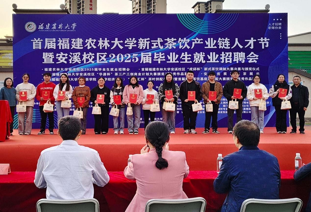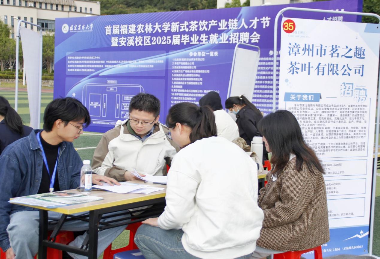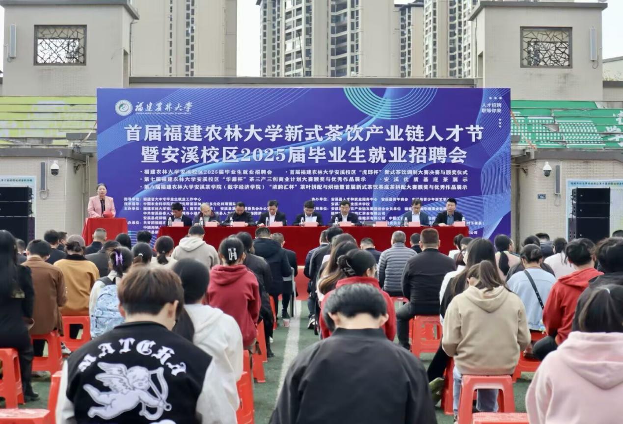 12月13日,由开云网页版安溪茶学院(数字经济学院)、安溪县茶业管理委员会办公室、安溪县委人才工作领导小组办公室、中共安溪县人力资源和社会保障局、安溪县虎邱镇人民政府联合主办的首届开云网页版新式茶饮产业链人才节暨安溪校区2025届毕业生就业招聘会在开云网页版安溪校区田径场举办。