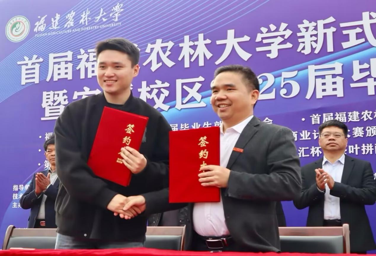 随后在主席台各代表见证下,安溪茶学院茶业科技系党支部书记、系主任高水练与雷庆平、李博浩分别上台签约新式茶饮供应链产学研合作项目及新茶式饮产学研合作项目,陈志丹与高碰来在台前签约新茶式饮产业链产学研合作项目。开幕式在三个项目的签约仪式中渐入尾声,本届毕业生就业招聘会正式开始。
