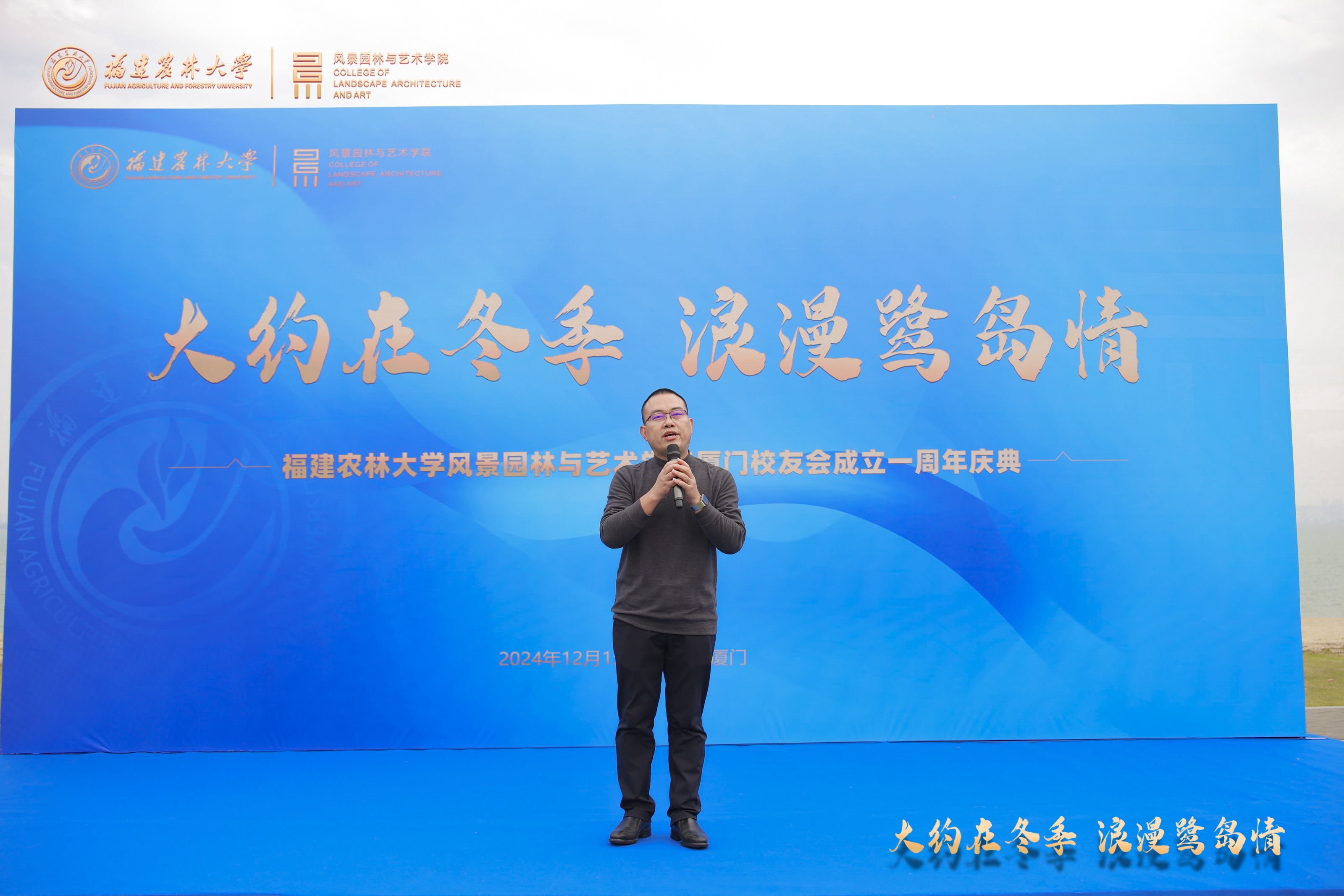 12月15日,风景园林与艺术学院厦门校友会在厦门环东海域彩虹沙滩举行“大约在冬季,浪漫鹭岛情”成立一周年庆典活动。风景园林与艺术学院党委书记雷国铨、副院长陈顺和、教师代表黄启堂、开云网页版厦门校友会会长王宗顺、常务副会长陈剑生、风景园林与艺术学院厦门校友会会长上官钦水、执行会长李忠元、监事长蒋慧玲及其他理(监)事会会长成员以及农学院厦门校友会、经济与管理学院厦门校友会、交通与土木学院厦门校友会、机电工程学院厦门校友会、林学院厦门校友会代表及风景园林与艺术学院福州校友会代表共计100余人参加活动,活动由风景园林与艺术学院厦门校友会秘书长张梁中主持。